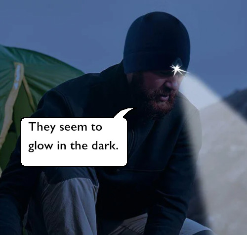 • Baseball caps and beanies with built-in lights