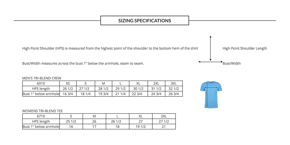 Because these are tri-blend shirts. What three things they’re a blend of, we have no idea. Or, more accurately, we don’t care. The truth is, tri-blend shirts are basically the nicest t-shirts there are. They’re super soft and comfortable. If you’re not used to them, though, they might feel a little thin at first. But trust us: give it time, and soon most other shirts will feel like sandpaper to the ultra-refined palate of your skin.