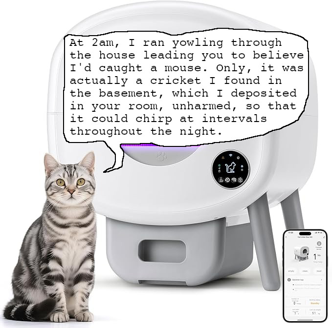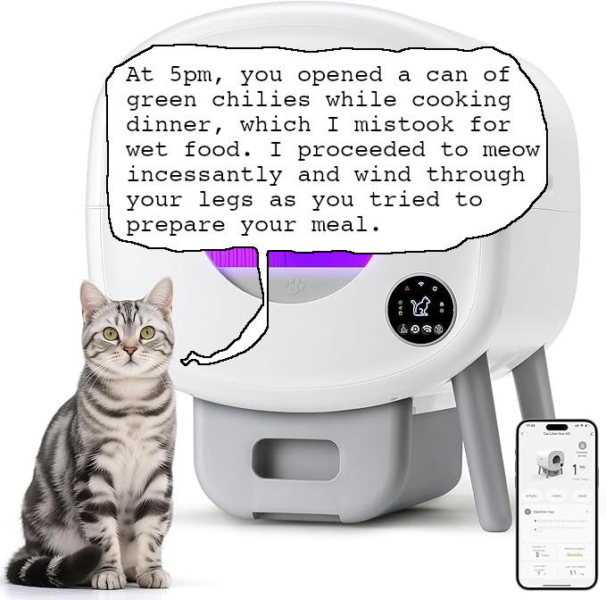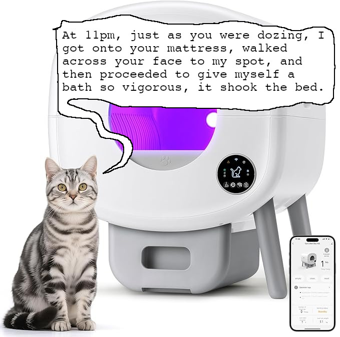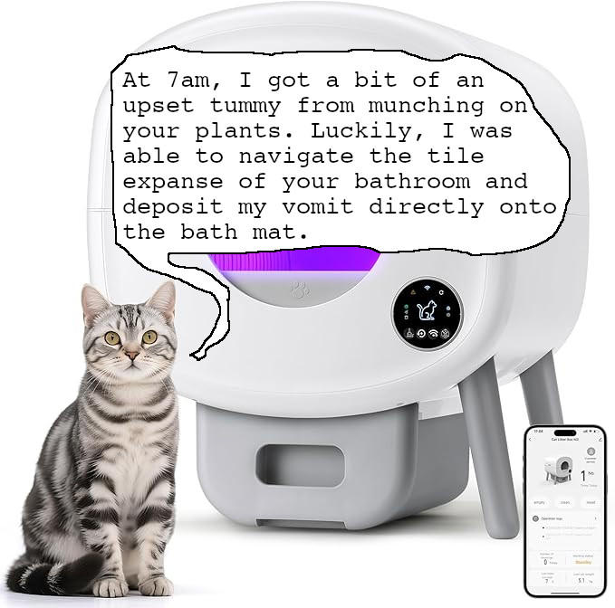 - Bunch of safety features so it won’t start doing it’s thing if your cat is in there