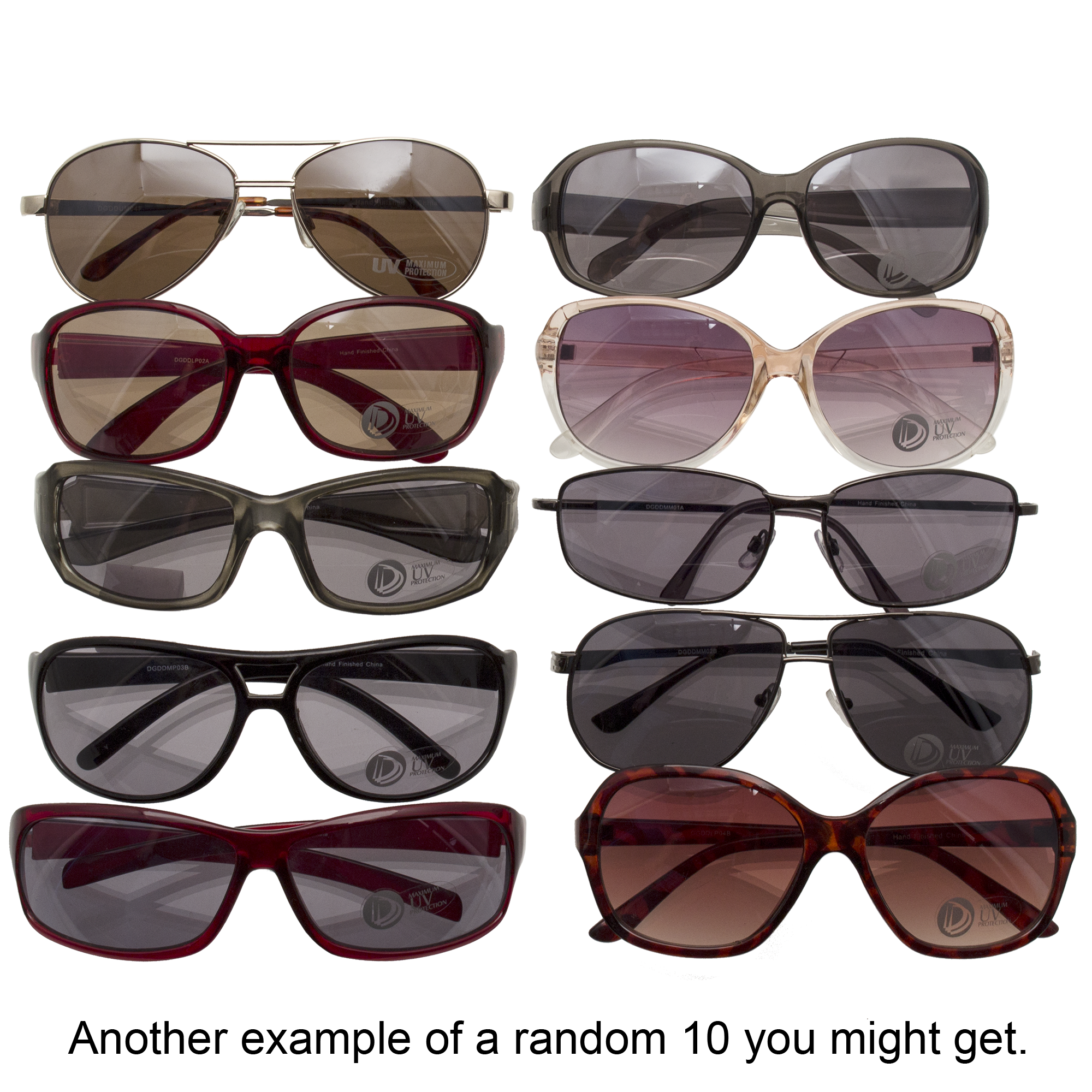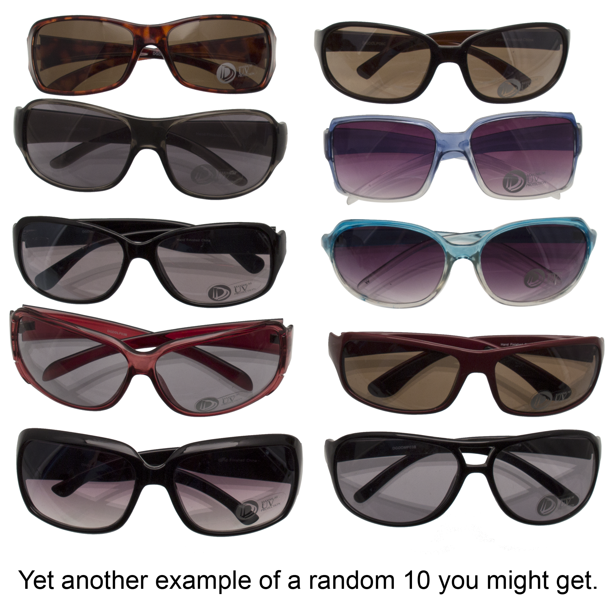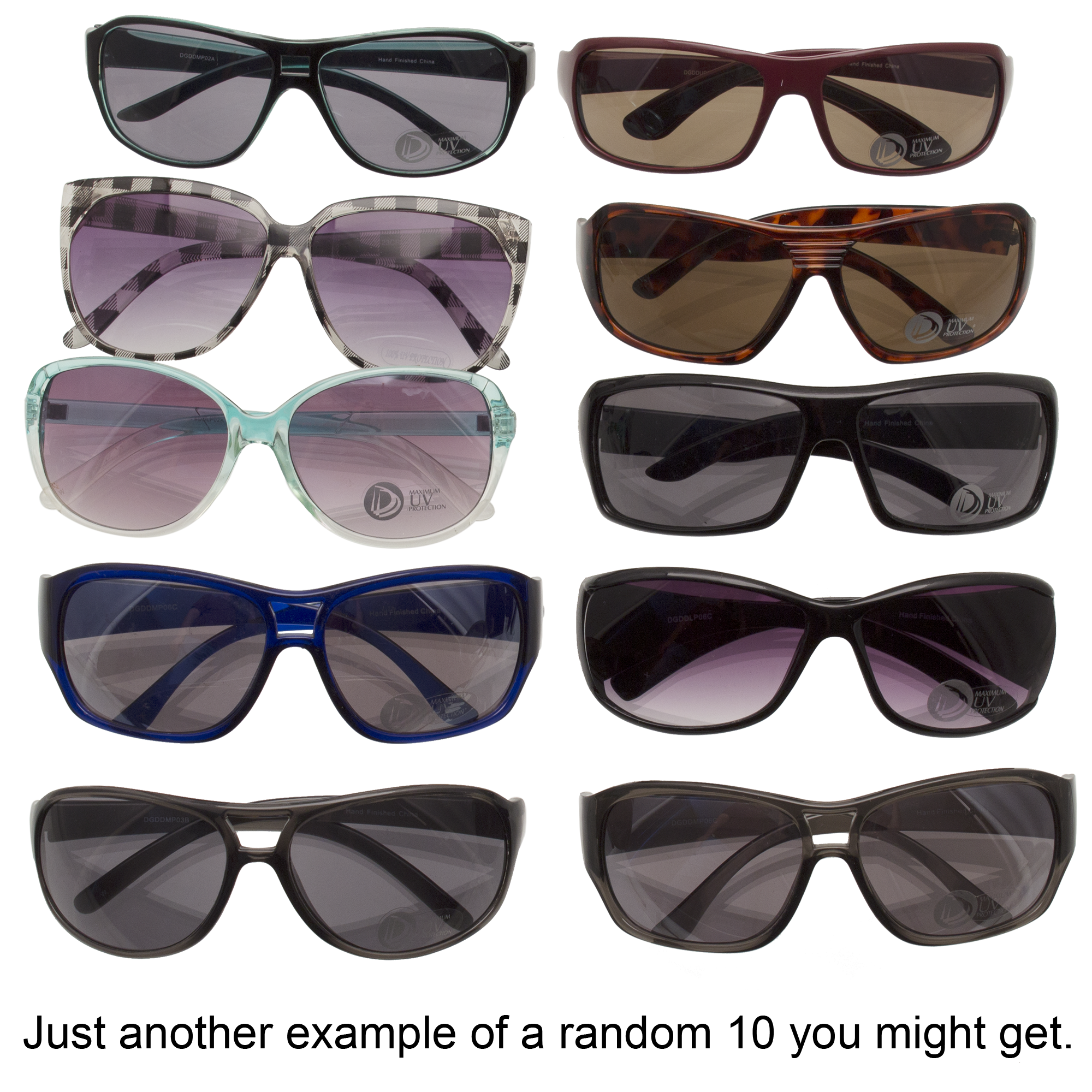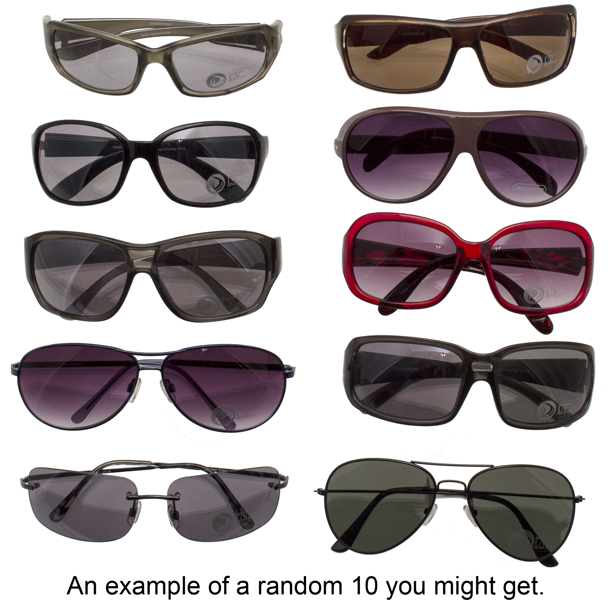 Specs ==== - Model: B^| - Condition: New - Protect your eyes from the sun’s deadly deadly UV rays - Lots of styles, some of them don’t look half-bad What’s in the Box? ==== 10x Random Sunglasses Pictures ==== We Have So Many Sunglasses