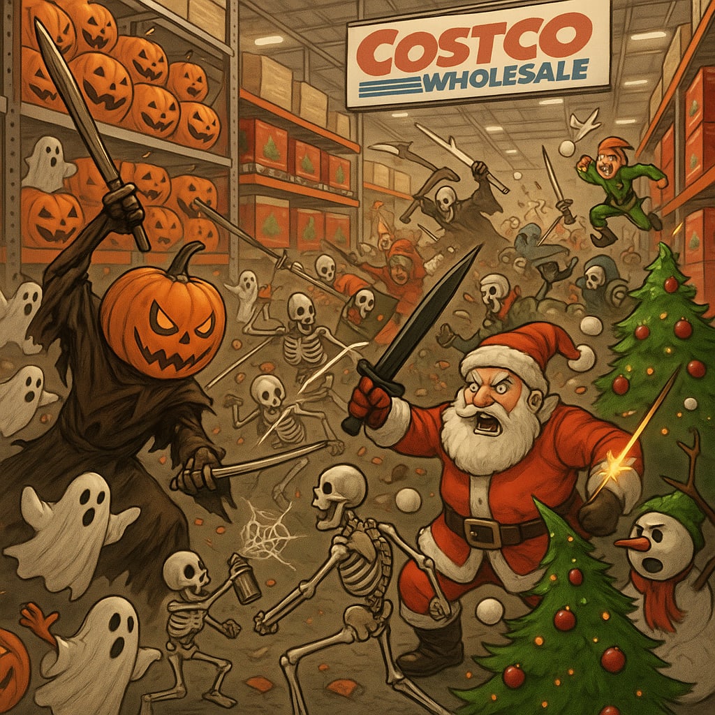 /showme a war between Halloween and Christmas at Costco