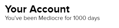 I have been Mediocre for a bit more than 5 trillion days if you count reincarnation and spiritual existences. But that’s only counting within this universe.