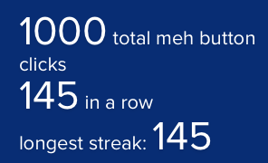 I hadn’t been paying attention… Hit the magic 1000 on meh clicks. Today! I would have missed it were it not for this thread being re-activated.