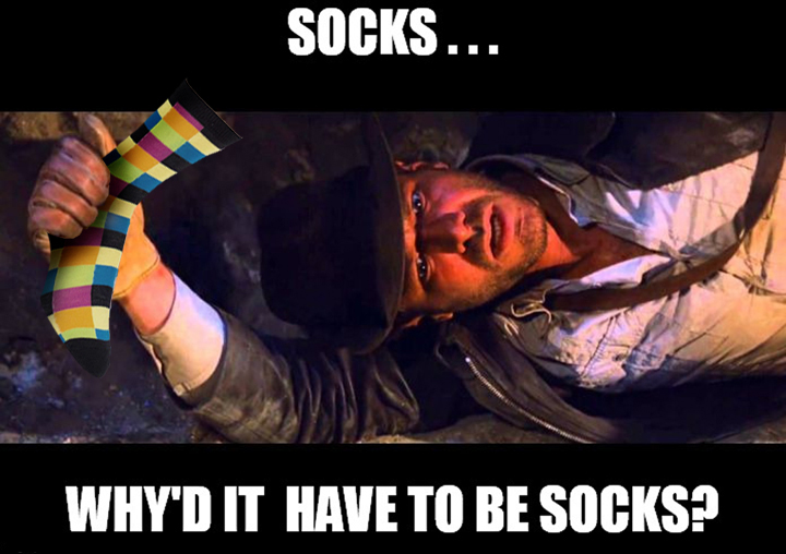 At 6am in my morning ritual while downing a Bloody-Mary is not a time for me to make loud color sock selections for work.