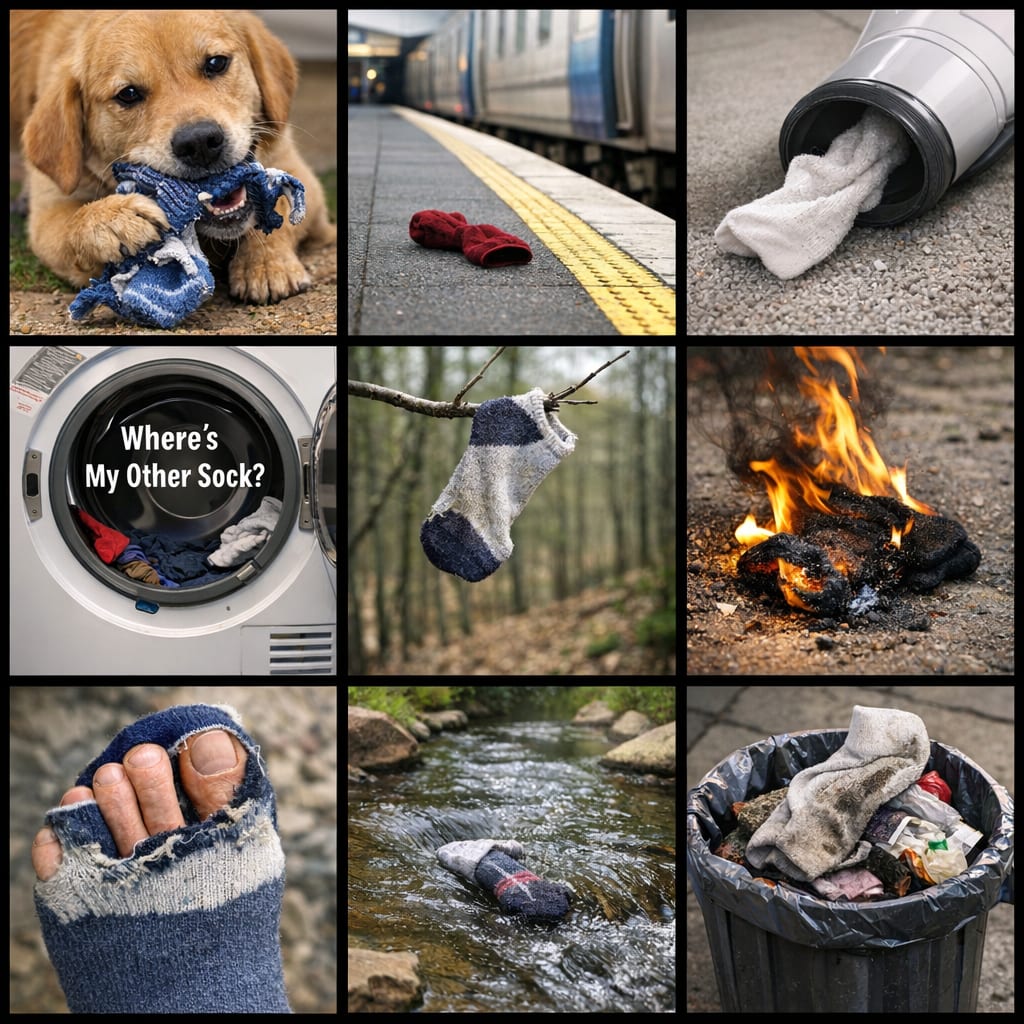 @cfg83 Here’s the image you requested for “Many different ways a sock can be lost or destroyed.”