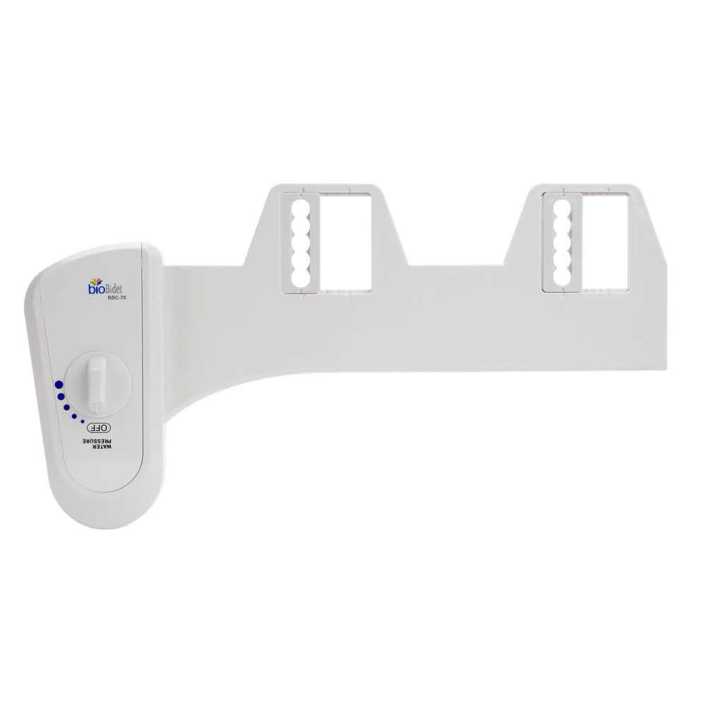 Specs ====- Model: BBC-70 - Condition: New - Simple and easy to install and use - Adjustable water pressure - Universal 7/8 brass T valve as standard supply - Braided metal angled water hose supply - Splash guarded nozzle - P.S.P.C technology - No electricity or batteries required - Manual What’s in the Box? ====2x Bidet 2x 7/8" fill valve adaptor 2x Water supply hose 4x Protective O rings Pictures ====BidetsKnobSprayTopSprayerSlides into placeToiletHoseBoxesOld FaithfulPrice Comparison ====- $49 List - $57.98 at Amazon
