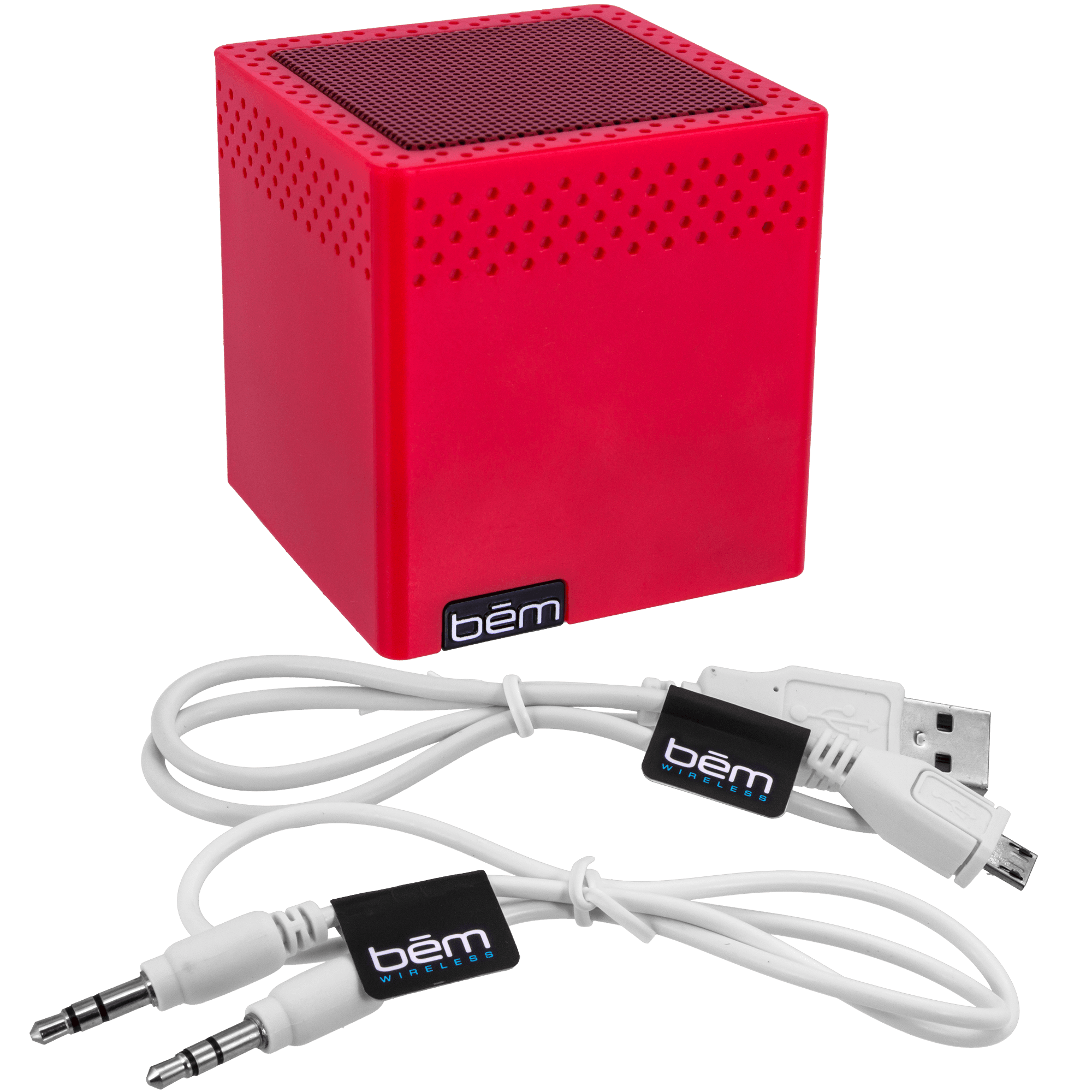Specs ====- Model: HL2508C- Condition: New- Built-in mic to receive & make calls- 3.5mm Aux In for optional wired connection- Play / pause and volume control buttons- Frequency response: 100Hz-16000KHz- Bluetooth V2.0+EDR, profile, A2DP, AVRCP- Approx. 40 ft. of working range- Built-in Li-ion rechargeable battery (6-8 hrs) 3.7V,320mAh- Charges via Micro USB (cable and adapter included)- Power (RMS): 1W x 2- Soft touch finish- Product Dimensions: L 2.25 x H 2.25 x D 2.25- Item Weight: .4lbWhat’s in the Box? ====2x Speaker2x 5V/1A USB Power Adaptor2x USB to Micro USB cablePictures====Retail boxesTwo cubesIncludedBottomDetail viewCoin for scalePrice Comparison====$37.98 (for 2) at AmazonFind a relevant price comparison? Please share it in a comment in this thread