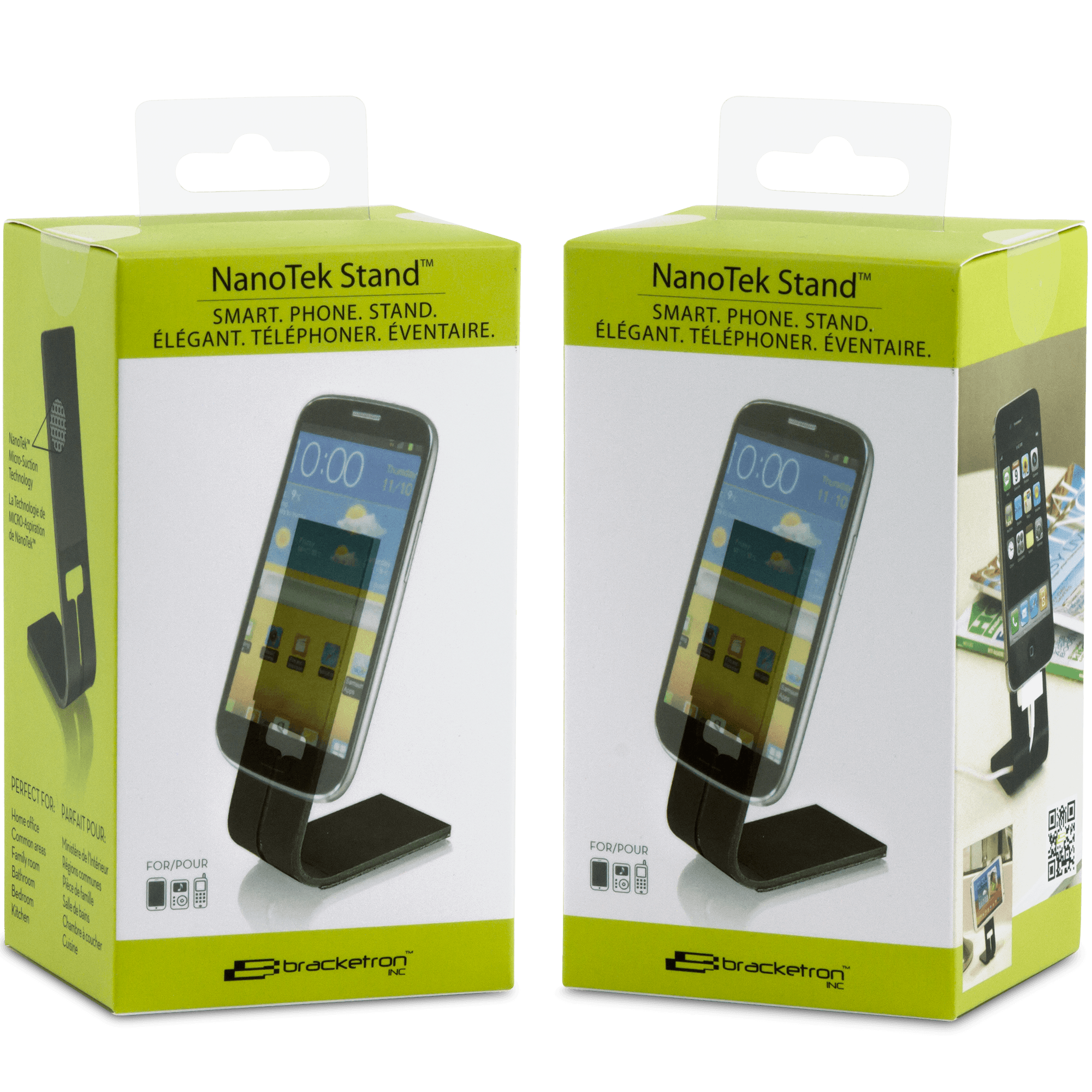 Specs====- It’s 2-for-Tuesday: You are getting 2 NanoTek stands- NanoTek micro-suction technology securely grips device and desk without messy or sticky adhesives- Durable aluminum composite construction- Cable management design keeps power cord handy for charging- Perfect for smartphones- Use on desk, in kitchen, bedroom, bathroom, office, etcCondition - New Warranty - 60 Day Bracketron Ships Via - FedEx SmartPost - $5 Shipping, Free with VMP What’s in the Box?!====- 2x NanoTek Stand- Product GuidePictures====StandRetail BoxPrice Check====$9.50 at Amazon (for 1)Find a relevant price comparison? Please share it in a reply to this comment