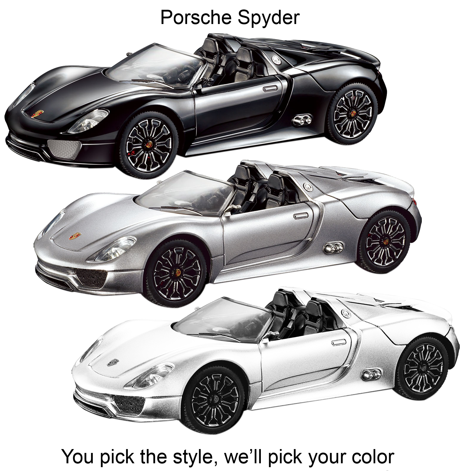 Received items ordered the 911 and the spyder both came with fingerprints and the white thing on bottom of car that moves broke off when I touched, WHY THE FUCK WOULD YOU SEND ME 2 BLACK CARS?why not one black one another color ?was a pussy move indeed these cars are Garbage maybe a lil silver paint where the mirrors should be geeze…You show us all that color selection then send two of the same color That was someones return, wake the fuck up … Ty team Meh your the best lol