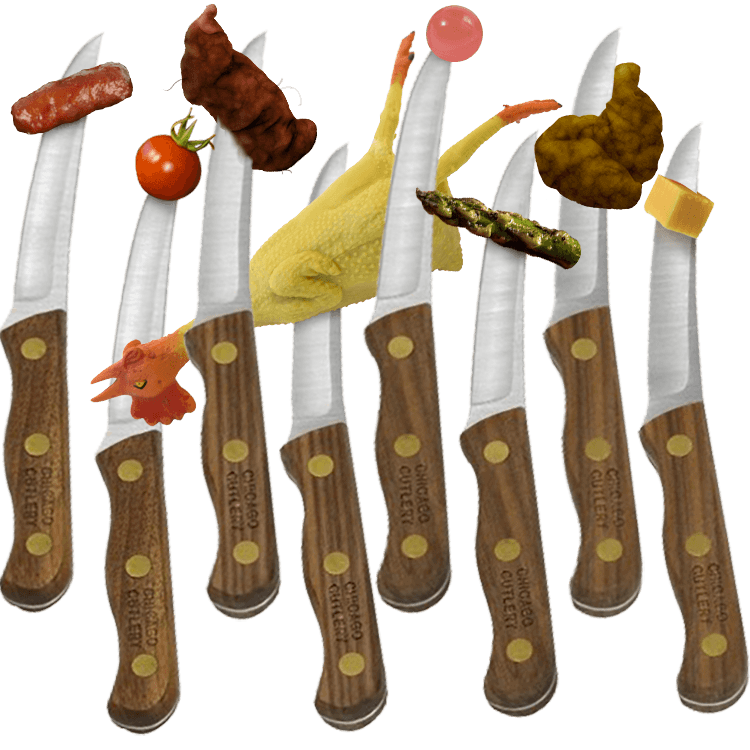 I haven't eaten steak for 20 years. Just bought 2 sets of steak knives. WHY, meh?! I cannot resist your "buy your own damn steak" sales pitch.