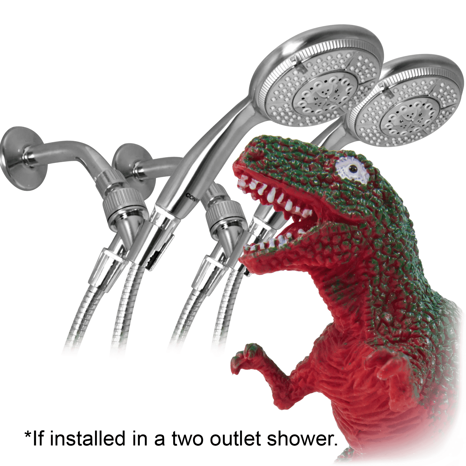 If installed in a two outlet shower I will get dinosaurs?