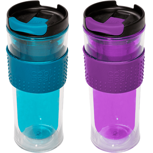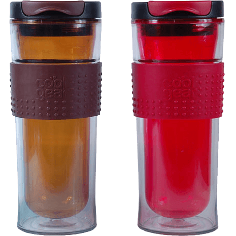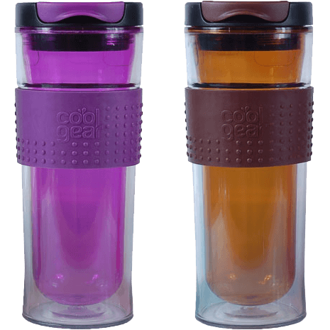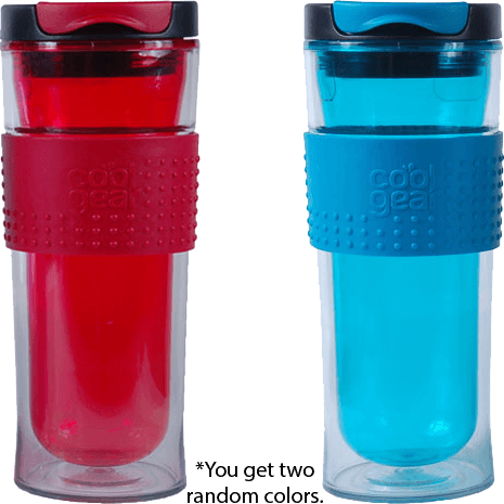 Specs====- Model: 1280- 14 oz- BPA free- Double wall insulates cold or hot- Spill-proof lid- Top shelf dishwasher safe- Grip band made of thermoplastic rubber- Random color- No repeat colors if you order one or two pairs. No promises with three pairs.Condition: NewWarranty: 90 day MediocreEstimated Delivery: 2/11 - 2/13Shipping: $5 or free with VMP What’s in the Box?====2x Random Color Cool Gear Double-Insulated Mason MugsPictures====Red and BlueBlue and purpleOpen topPurple and brownBrown and redAll optionsCactus juicePrice Check====$39.98 for two at Amazon$19.98 for two at Cool Gear