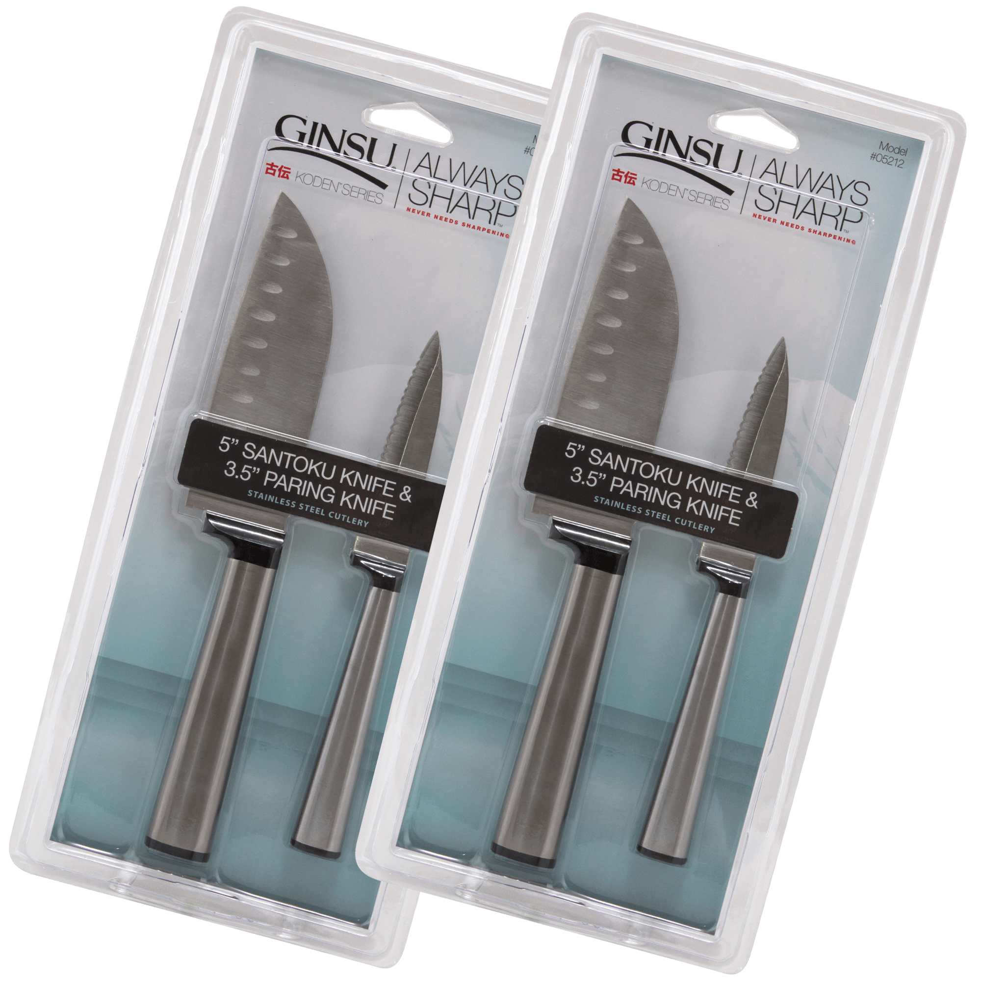 Specs ====- Model: 5212- Condition: New- Santoku blade length: 4 7/8"- Santoku total length: 9 7/8"- Paring blade length: 3.5"- Paring total length: 7 15/16"- Blade and handle material: Stainless steel- Dual-serrated paring knife edge prevents tearing of food like traditional serrated blades- Symmetrical handle for right or left-handed users- Hand-wash suggestedWhat’s in the Box? ====2x Santoku knife2x Paring knifePictures====PackagingKnivesPrice Comparison====$18.92 (for 2) at Amazon$12.99 List for one Santoku$9.99 List for one ParingFind a relevant price comparison? Please share it in a comment in this thread