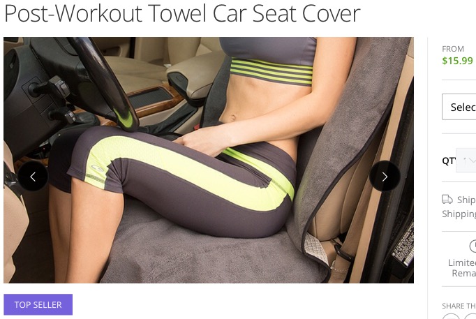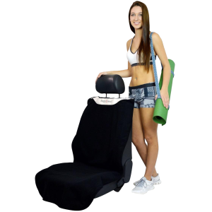 … but there’s another hidden message: Girl did yoga (see the mat) or went to the beach. Anyhow, she’s all sweaty, sticky, dirty and you don’t want that on your car seats. Solution: Seat covers.
