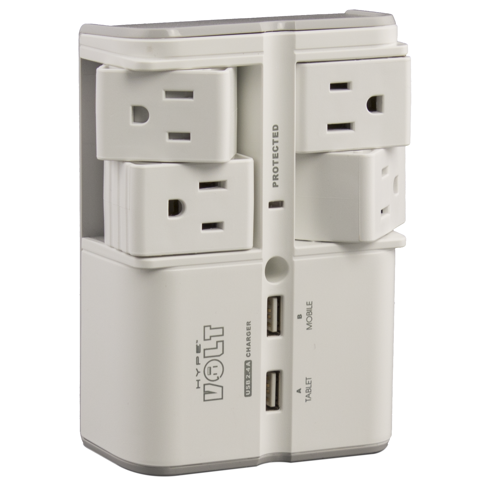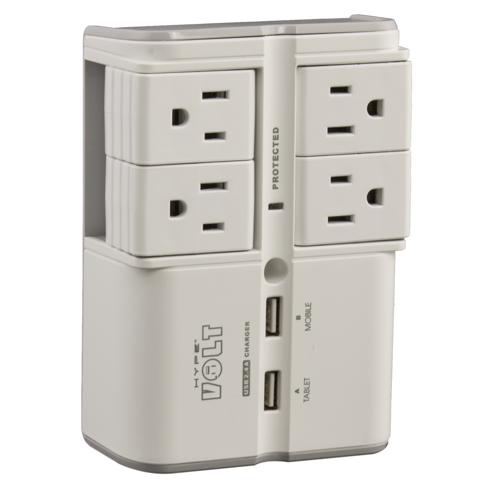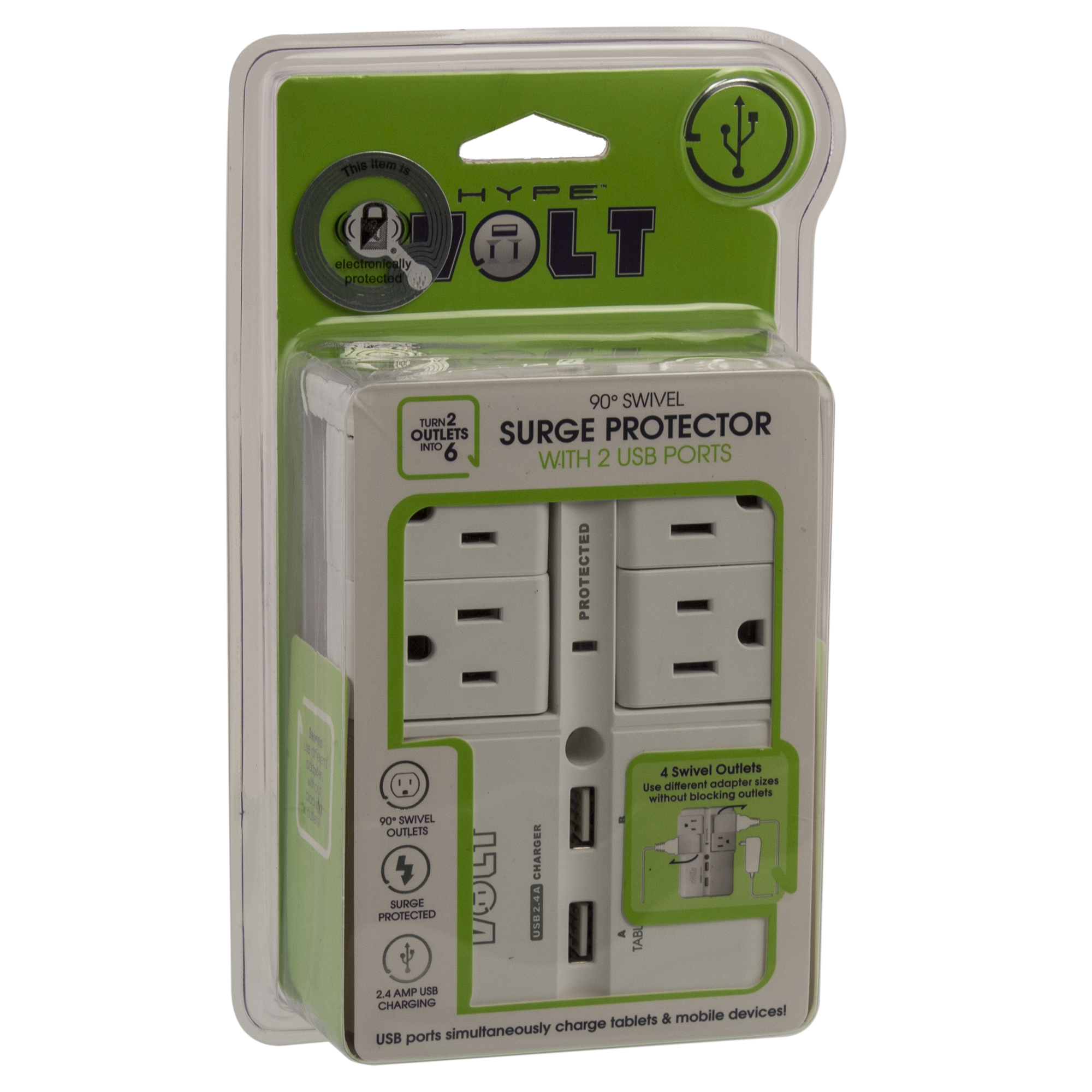 Specs ====- Model: HV-6SWS-WHT- Condition: New- 90-Degree swivel outlets- Surge Protected- 2.4A Dual USB Charging Ports- Continuous Duty Electrical Rating: 13A, 120VAC, 60Hz, 18000W- Surge Joule Rating: 540J- Surge Clamping: 500V- Max Spike Voltage: 6kvWhat’s in the Box? ====2x Surge ProtectorPictures====Surgin’Twistin’Pluggin’Chargin’…Packagin’?Screamin’Price Comparison====$65.98 (for 2) at Amazon