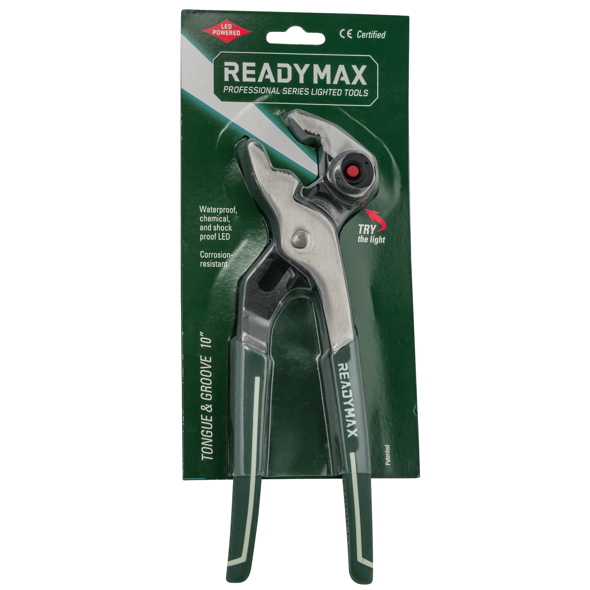 Specs ==== - Model: RMT-TG-10-BP - Condition: New - Tongue and groove hinge - Waterproof, chemical proof, and shock proof LED - Auto shutoff after 2 minutes - Power: 3x #392 batteries - Rubber grips - Corrosion-resistant What’s in the Box? ==== 2x Pliers Pictures ==== PliersHands for scaleLightExpandedRetail packaging Price Comparison ==== $35.94 (for 2) at Amazon