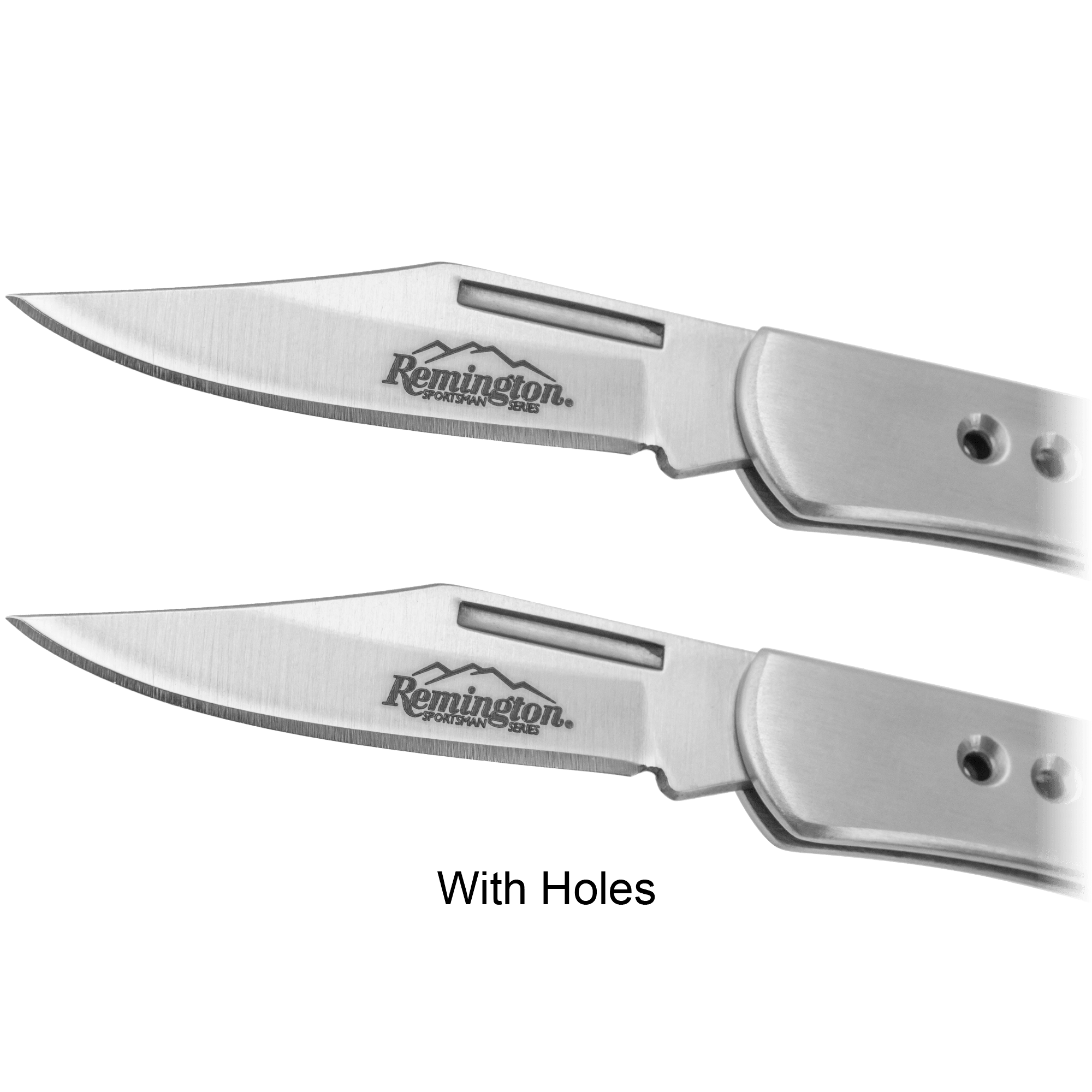 Got mine today,two of each, nice little knife. I have one that’s looks to be an exact duplicate of the no holes knife but it is labeled as a “Winchester” knife. Had the Winchester for years and it’s held up well.