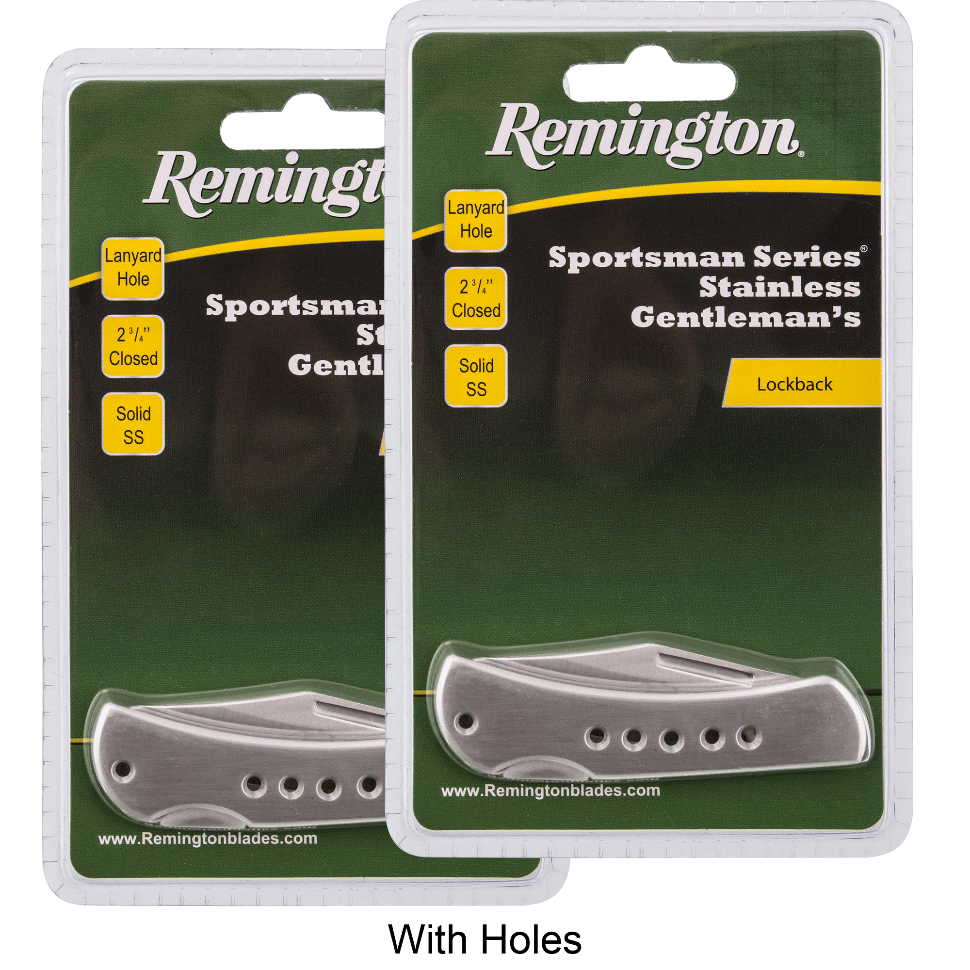 Specs ====- Model: R11507, R18043- Condition: New- Closed length: 2.75"- Open Length: 4.875"- Blade length: 1.125"- Material: 440 Stainless Steel- Lockback mechanism What’s in the Box? ====2x KnivesPictures====With holes and handWithout holes and handWith holes closedWithout holes closedBlade with holesBlade without holesBack with holesBack without holesPackaging with holesPackaging without holesPrice Comparison====$47.92 (for 2) at AmazonFind a relevant price comparison? Please share it in a comment in this thread
