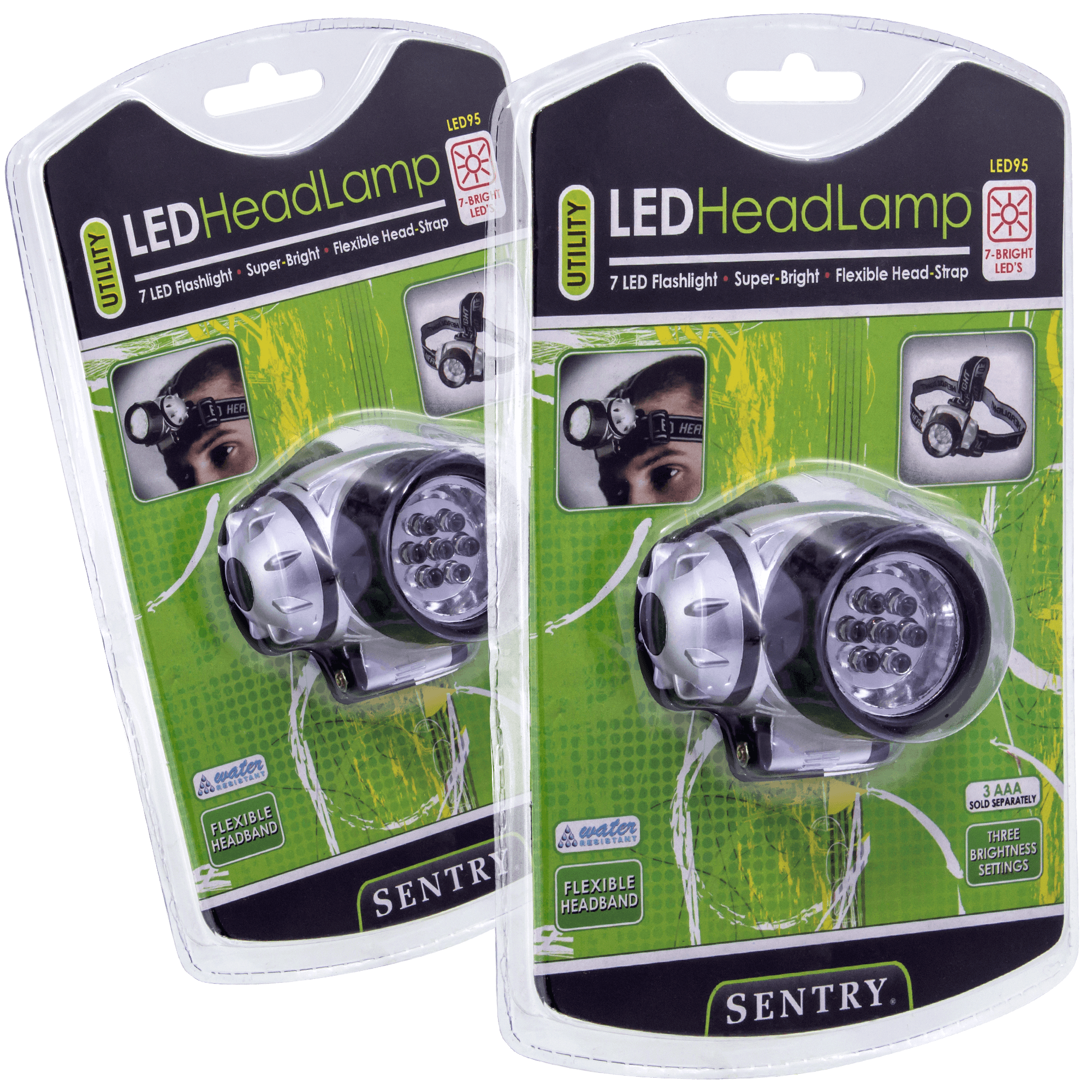 Specs ====- Model: LED95- Power: 3x AAA batteries (not included)- Three power levels: 1 LED, 3 LED, and 7 LED- Battery life: 200 hours (1 led), 80 hours (3 leds), 20 hours (7 leds)- Rotates 180 (from straight ahead to directly into your own eyes)- Adjustable straps fit heads sized from “grapefruit” to “larger than average pumpkin”- Water resistantCondition: NewWarranty: 1 Year SentryEstimated Delivery: 12/12 - 12/14Shipping: $5 or free with **VMP**What’s in the Box?====2x HeadlampsPictures ====Retail packagingThe headlampsFoam headsRotatingGrossPrice Comparison====$15.98 List, $13.24 (For 2) at AmazonFind a relevant price comparison? Please share it in a comment in this thread