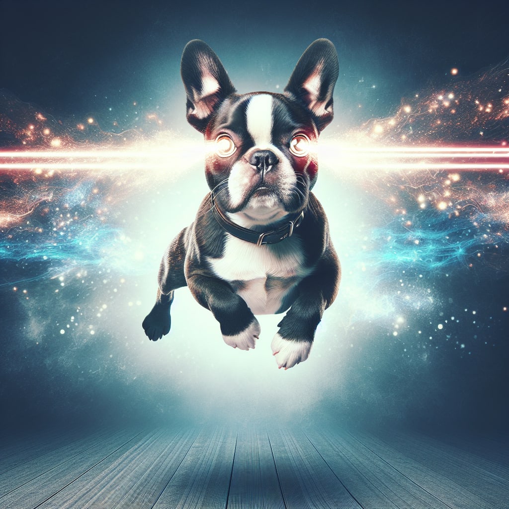 /showme hovering frenchton with laser beam eyes
