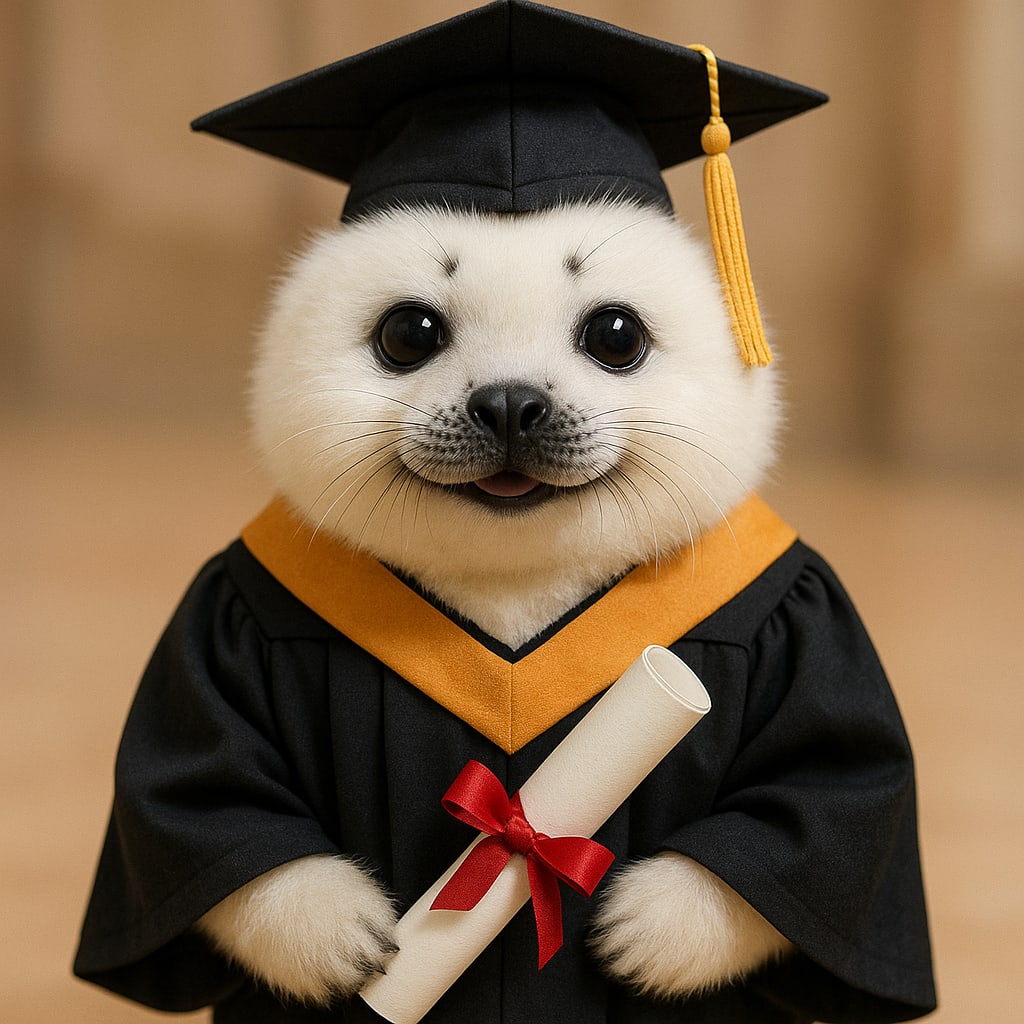 /showme Cute white baby seal graduating from college.