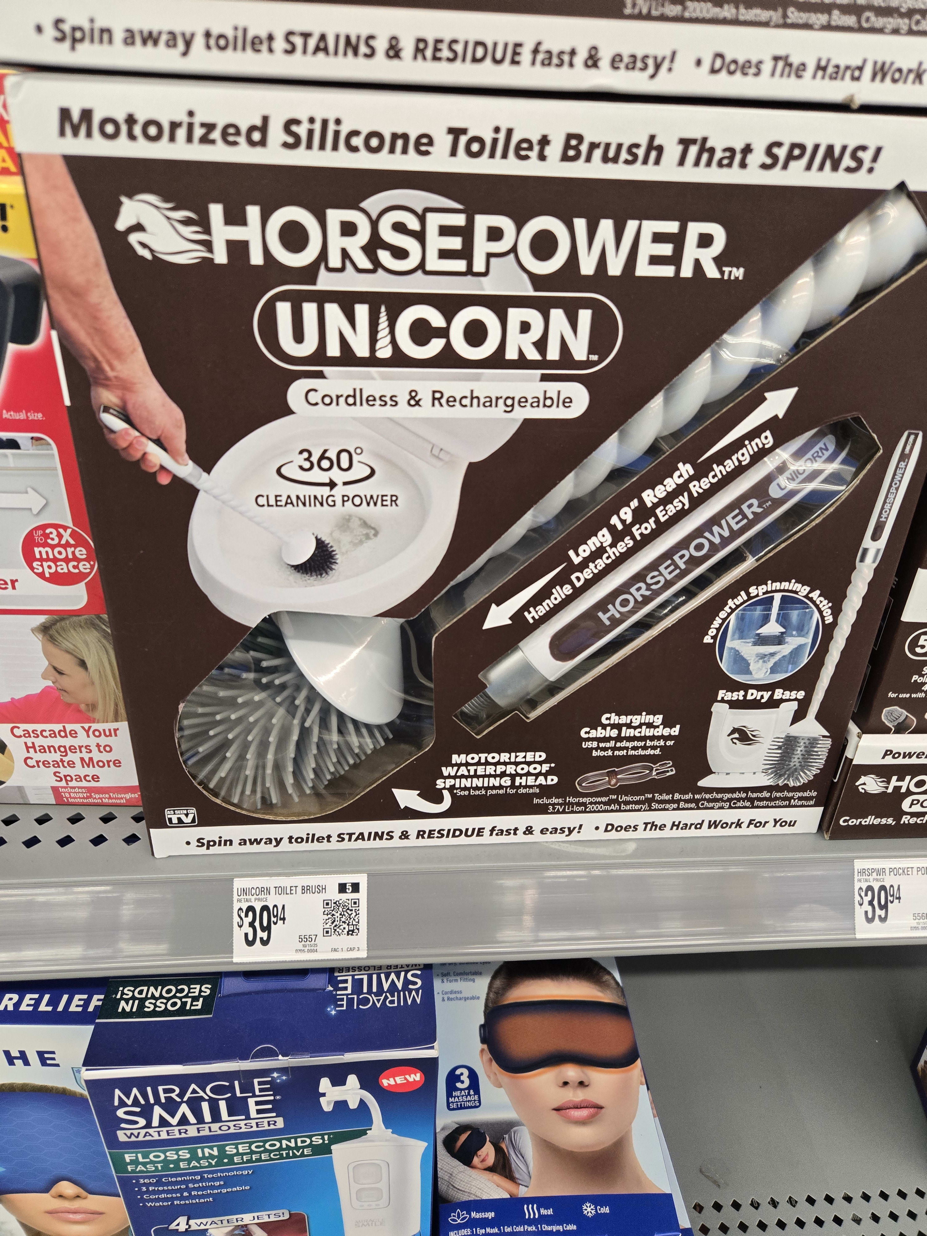 I’ll pass on the toilet blender. I’m sorry Horsepower UNICORN toilet brush x2.