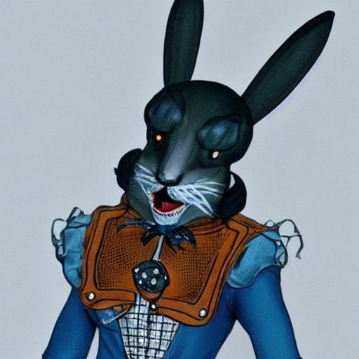 /showme a cool biker rabbit that looks like the mad HA-A5TR from Alice in wonderland.