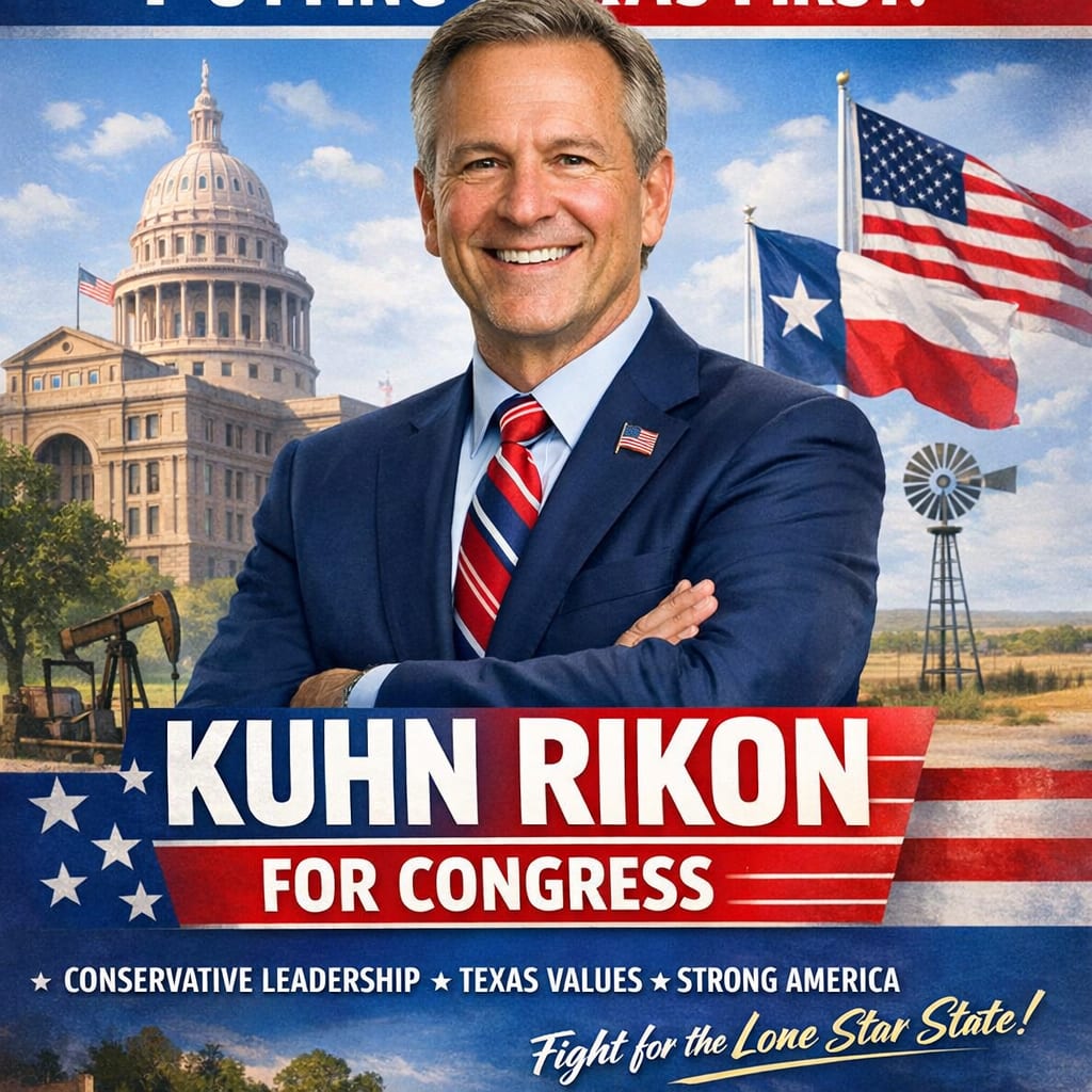 @KNmeh7 Here’s the image you requested for “kuhn rikon political campaign for a congressional seat in texas”