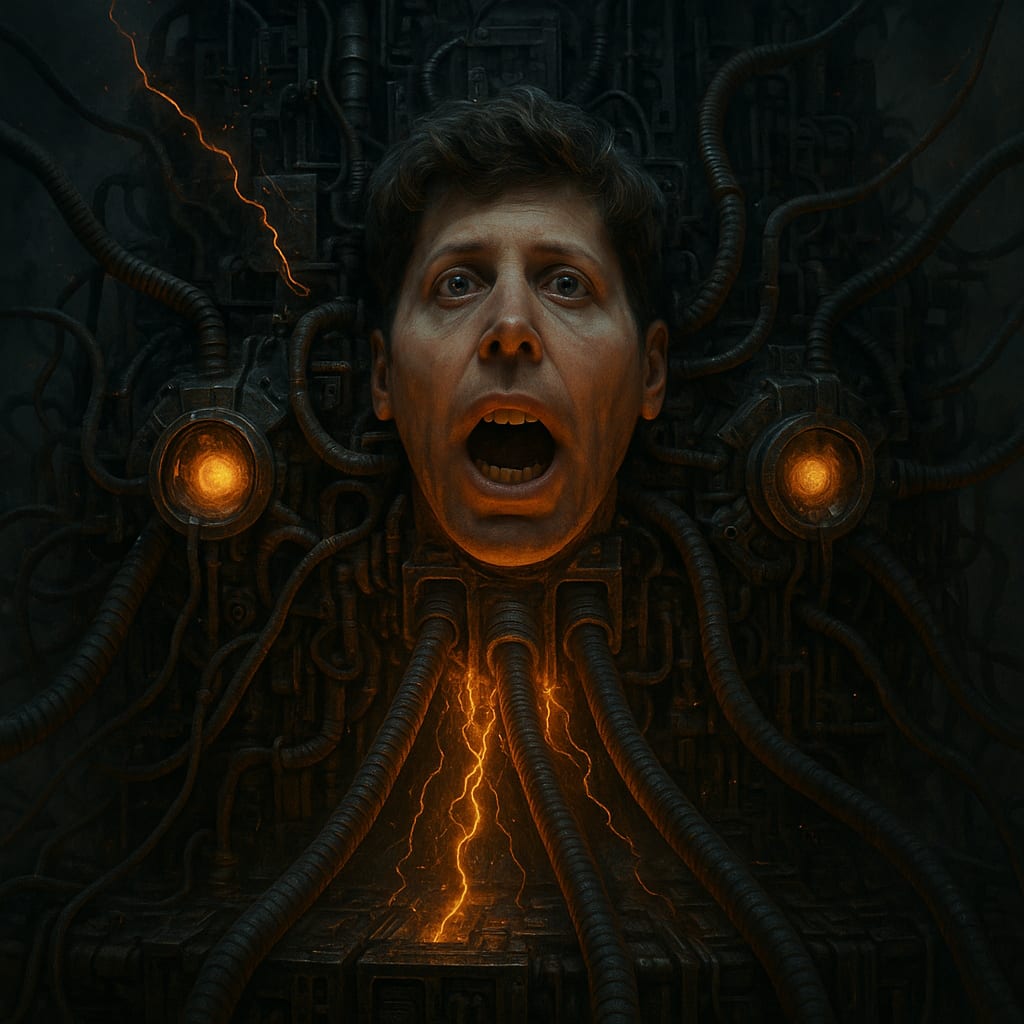 /showme A power-gobbling artificial intelligence monstrosity with the face of Sam Altman.