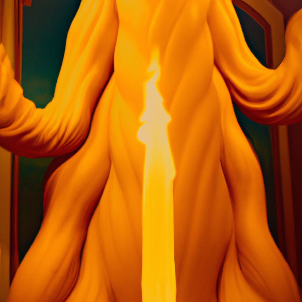 /showme an enormous flaming wax sculpture that dominates the room