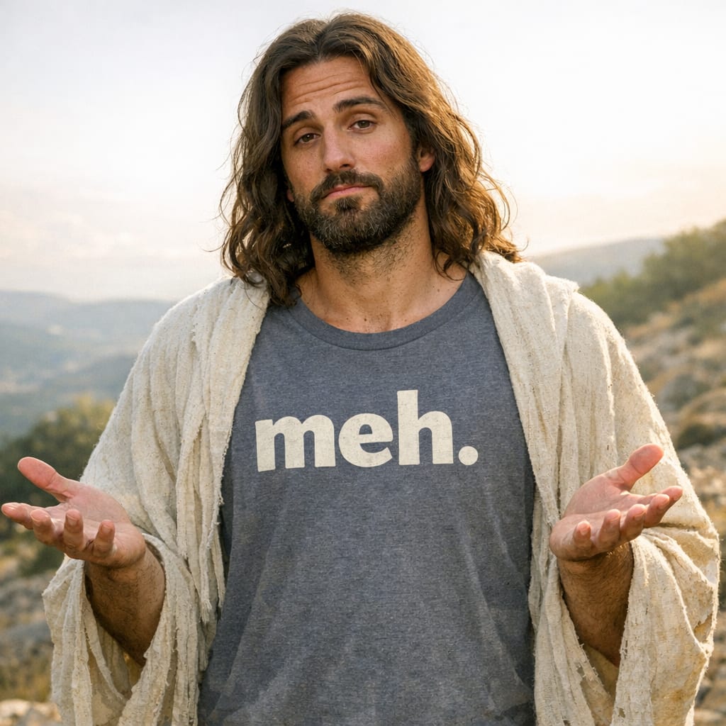 @cfg83 Here’s the image you requested for “Jesus in a meh T-shirt”