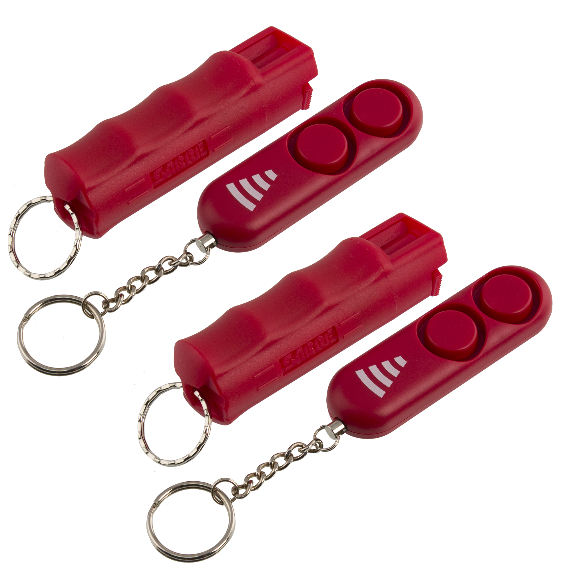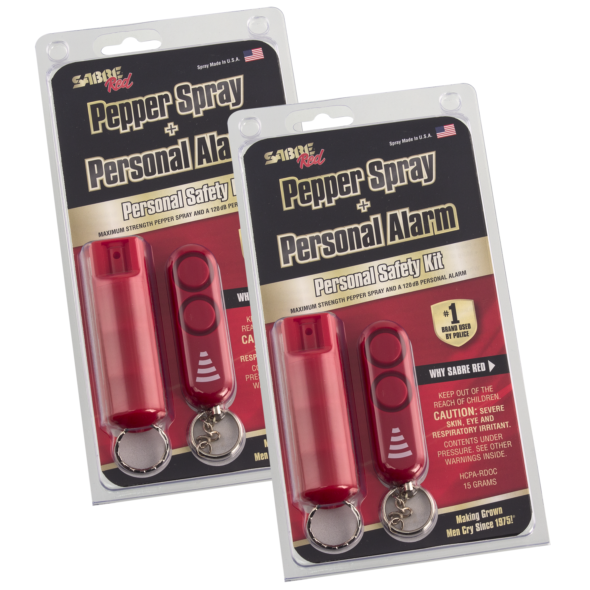 Specs ====- Model: HCPA-RDOC- Condition: New - 10-foot range- 25 bursts in a powerful stream delivery to reduce wind blowback- Maximum strength formula- Key ring attachment- UV marking dye aids in suspect identification - 110dB dual siren alarm (audible up to 600 feet away)- Made in the USA- Sorry, can’t sell to DC, Massachusetts, New York, or Wisconsin (still not sorry to Alaska or Hawaii)What’s in the Box? ====2x Pepper spray keychain2x Personal alarm keychainPictures====StuffPepper sprayGet ready…AlarmAlarm again?HandHandsPackagingBeth, bear mace that guy!Price Comparison====$39.98 (for 2) at Amazon