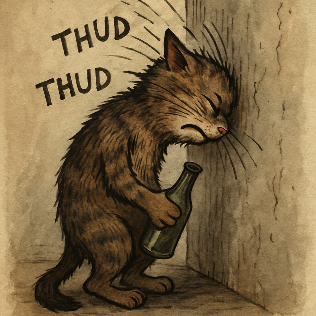 /showme a Drunk cat hitting its head against a wall, over and over again