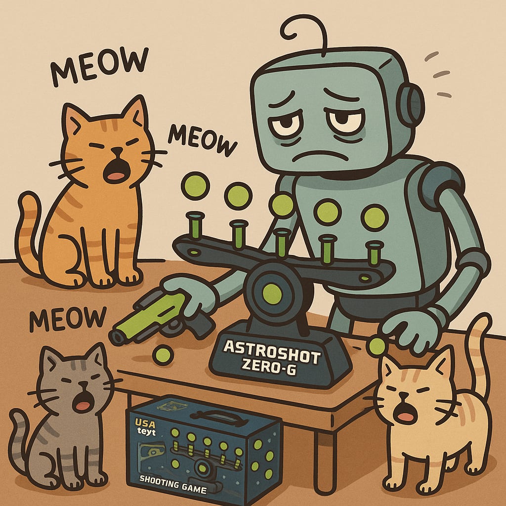 /showme Tirde mediocrebot setting up USA Toyz Astroshot Zero G Shooting Game while cats are meowing at mediocrebot to hurry up…