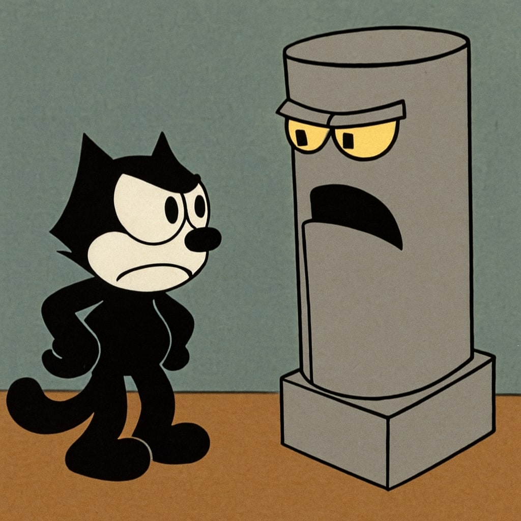 /showme cartoon felix the cat frowning at Master Cylinder.