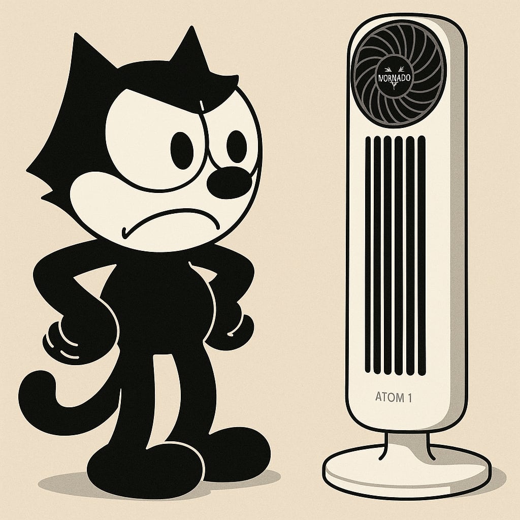 /showme cartoon felix the cat frowning at Vornado ATOM 1 Oscillating Tower Circulator.
