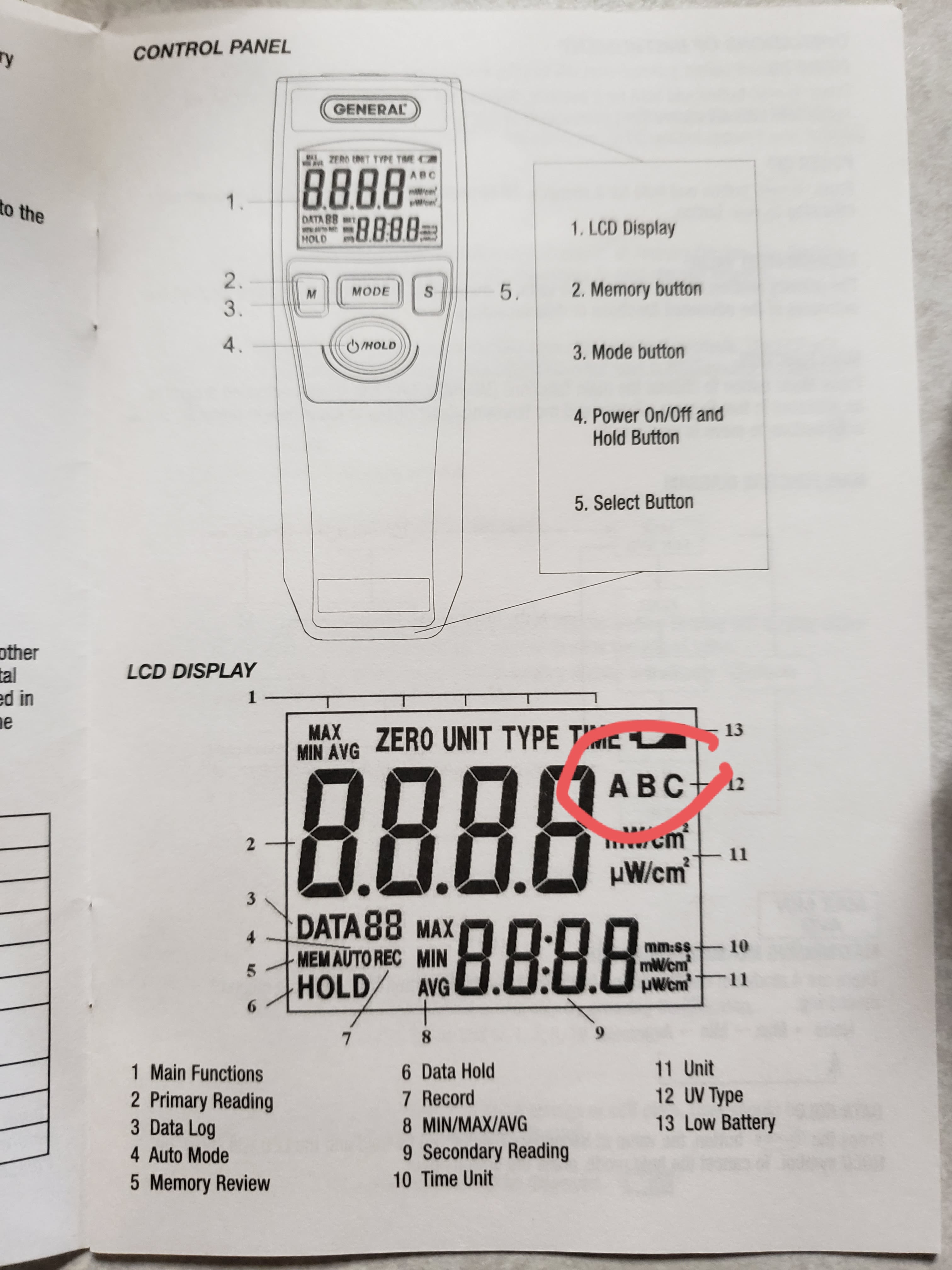 I have a little doubt if my meter can detect uv-c. The owners manual list A and B on the cover.