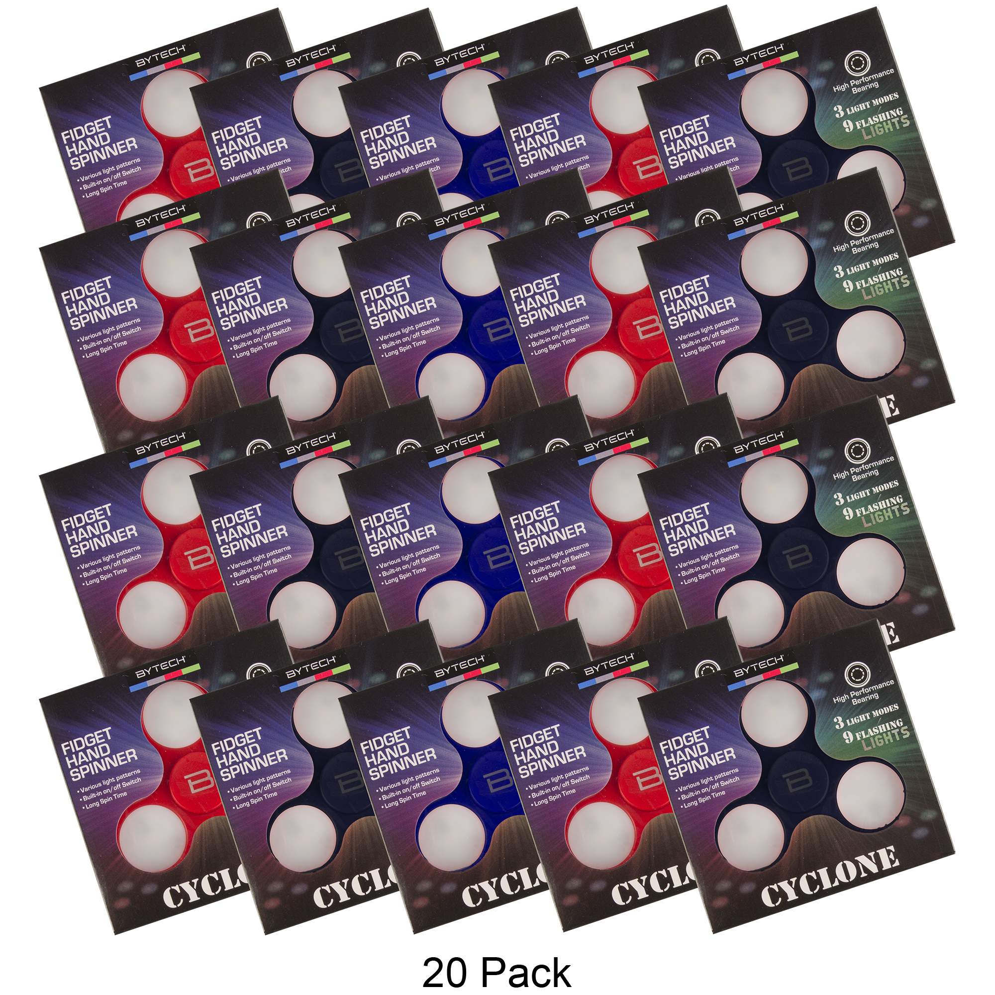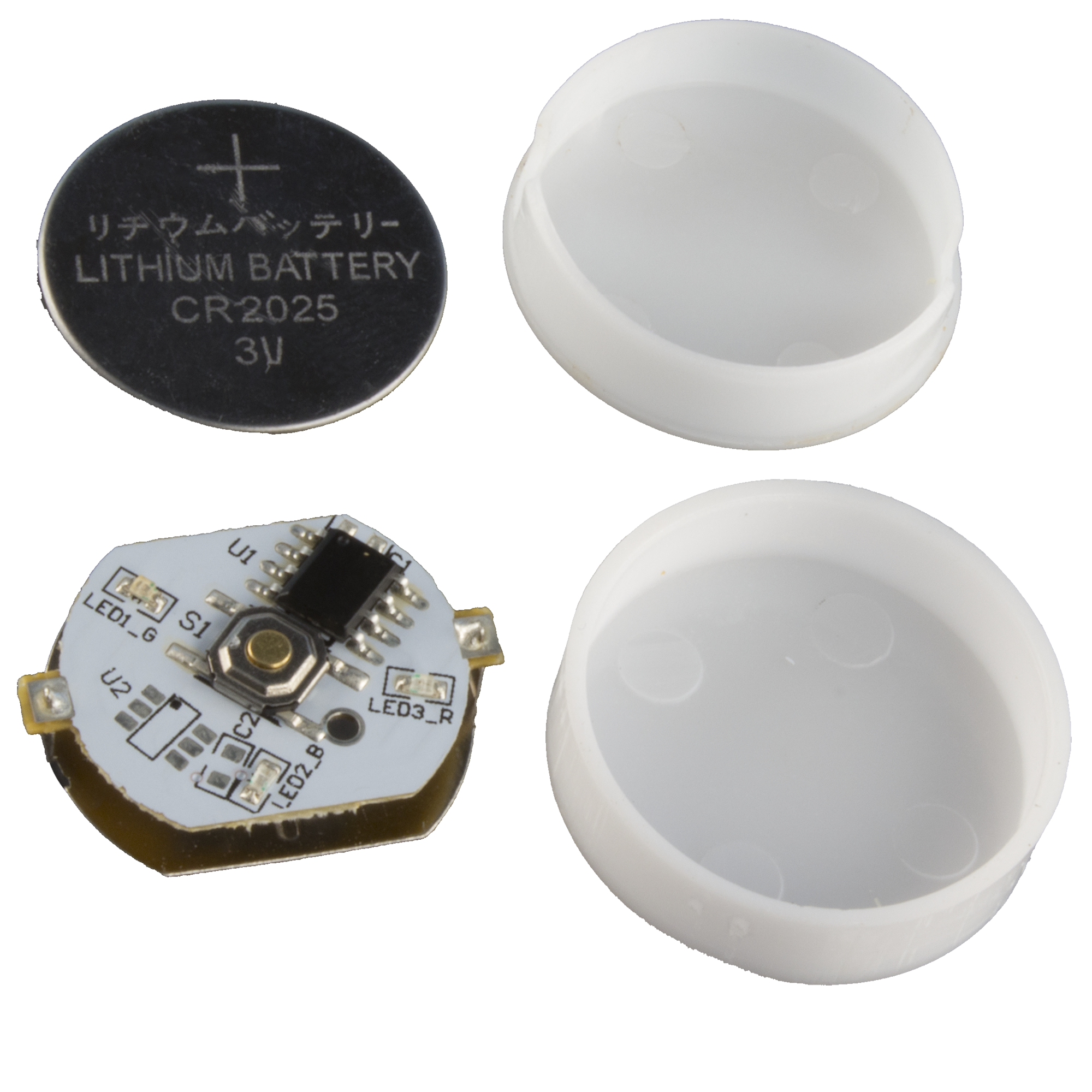 The batteries are a popular lithium watch battery, CR2025, which sell for about $0.50 apiece on Amazon. Since we’re selling the spinners themselves for $0.40 apiece, you’d be getting each CR2025 battery for about $0.13 each.