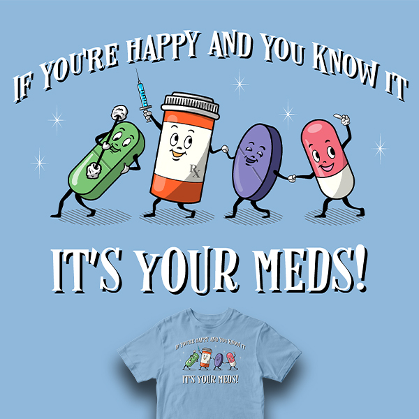 I really like the happy meds shirt, if that one wins let me know bc I’ll buy it for sure.
