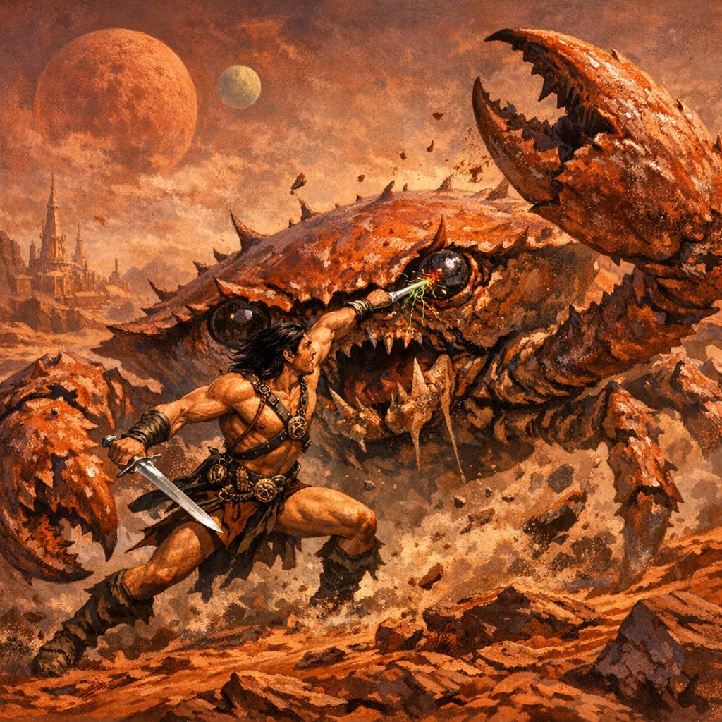 @therealjrn Here’s the image you requested for “John Carter fighting a giant crab on Mars”