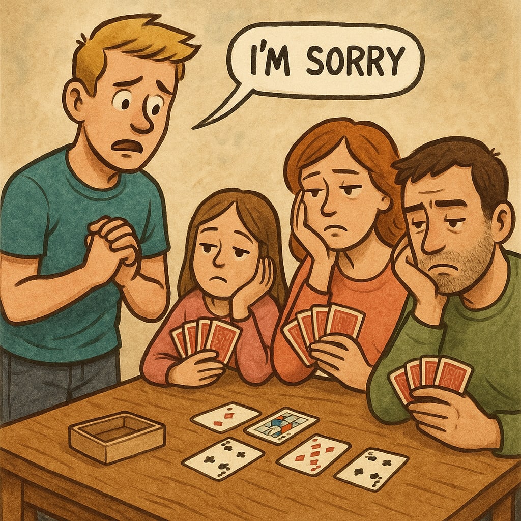 /showme Chad apologizing to bored family on his poor choice of card games.