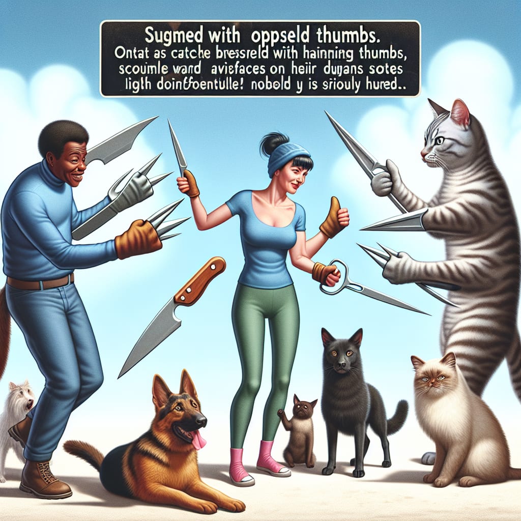 /showme things not ending well for dogs and humans because cats have opposable thumbs and sharp point objects.