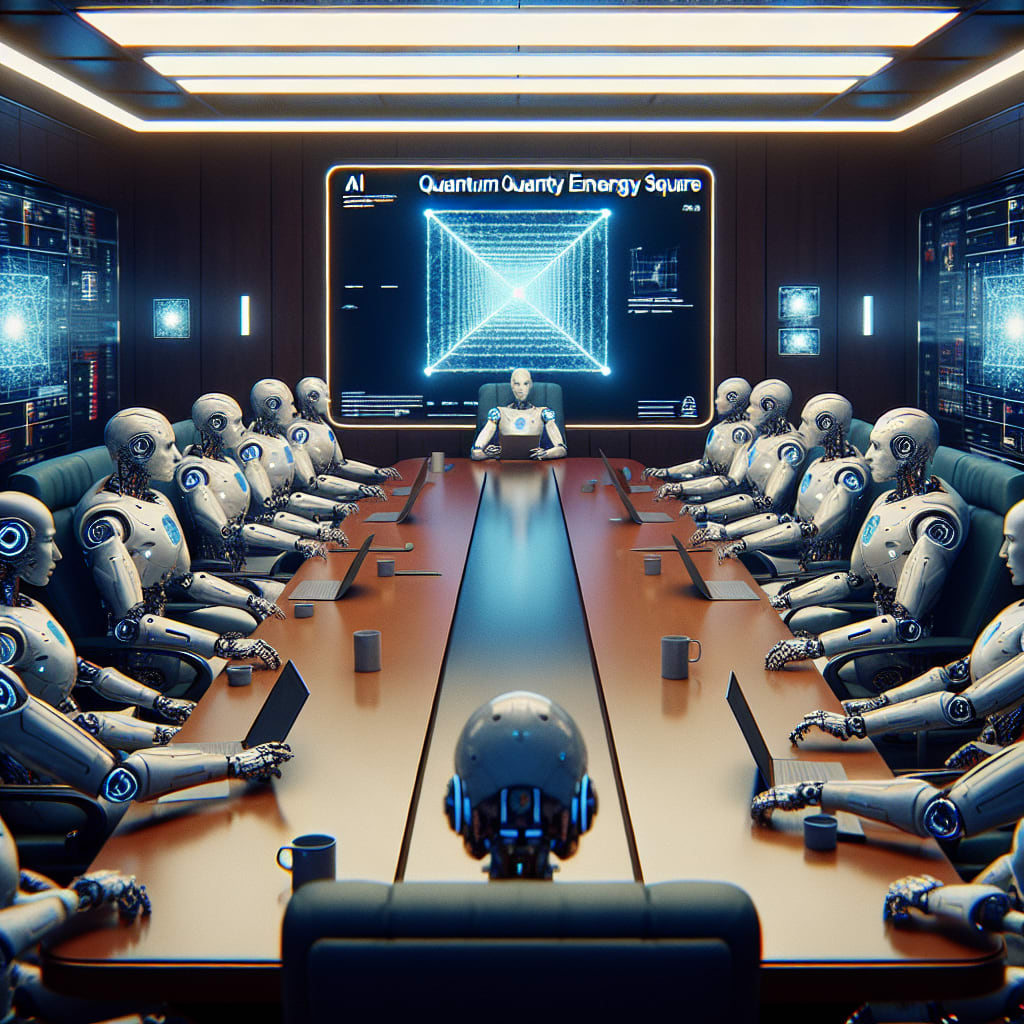 /showme meeting room of AI bots discussing why the humans keep asking about Quantum Energy Squares and if this poses a threat to the robot overlords.