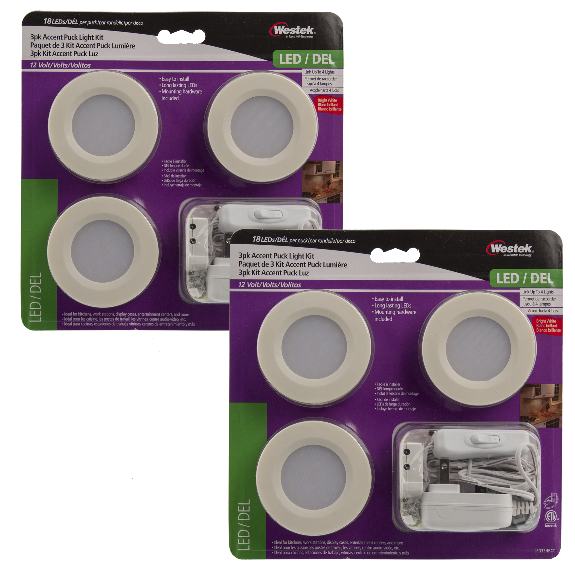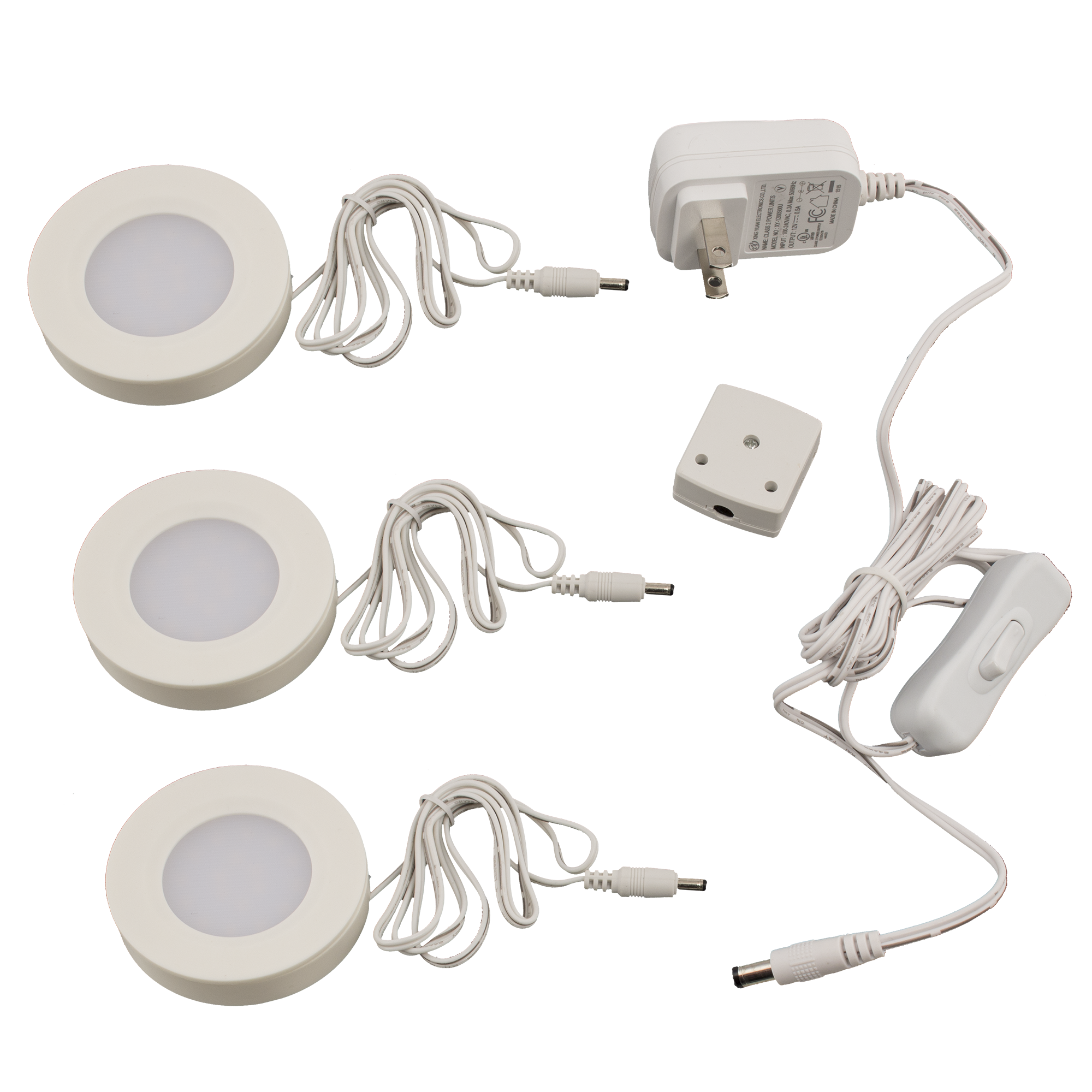 Specs ====- Model: LED33HBCC- Condition: New- 80 lumens each- 3000K CCT- Wattage: 5 watts- Hardware Included: Yes- Thickness: 2-3/4 in.- Linkable up to 4 pucks What’s in the Box? ====6x Puck Lights2x Wall adapters2x Multi-port adaptersPictures====PucksStuffBoxPluggedUh oh you broke itPackagingGo StarsPrice Comparison====$39.96 (for 6) at Amazon