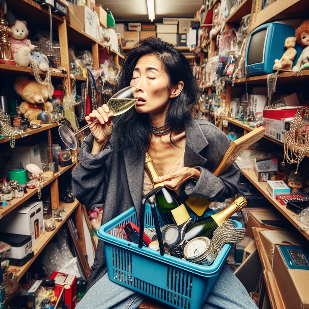 /showme someone excessive drinking prosecco while shopping at a very mediocre store full of junk.
