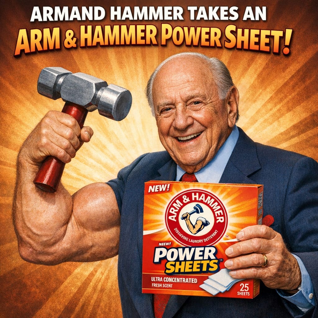 /showme armand hammer taking an arm & hammer style power sheet.