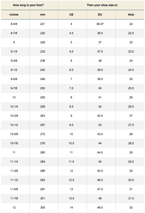 @ddbelyea In America, we use weird shoe sizes. They seem to be inches but isn’t. There is only a 1" difference between shoe size 10 and 13.
