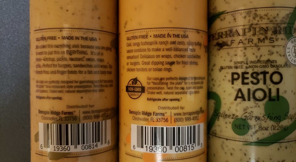 @stolicat one can go to the Terrapin Ridge Farm website and see the ingredient and nutrition info for any of these. https://terrapinridge.com/sauces/pesto-aioli-squeeze https://terrapinridge.com/sauces/truffle-aioli-squeeze