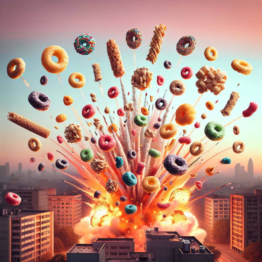 /showme the breakfast apocalypse with cereal bombs exploding in the air