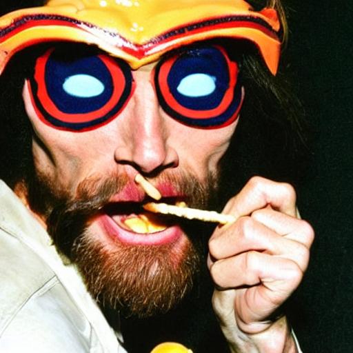 /showme willem dafoe as macho man Randy Savage eating hot meat sticks